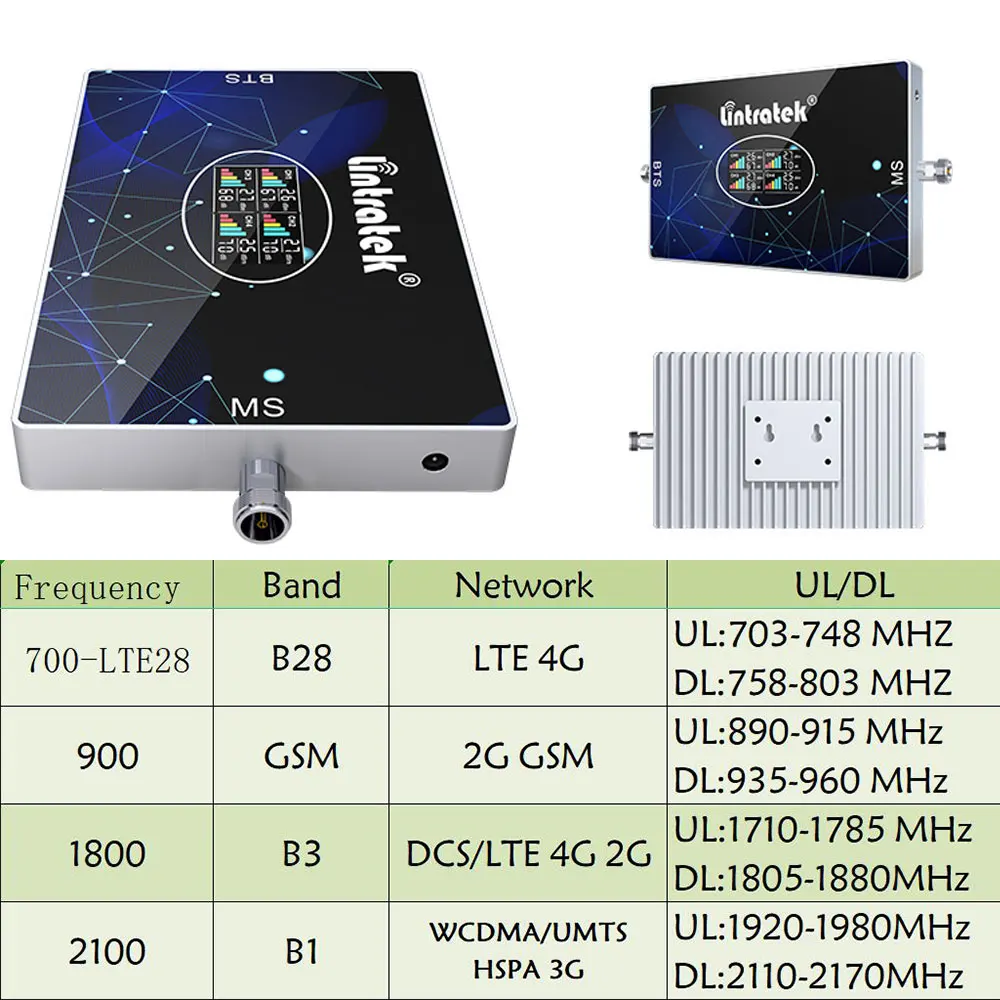 Lintratek LTE B28 700 900 1800 2100 сотовый усилитель 4 диапазона 2G 3G 4G усилитель сигнала повторитель для смартфона GSM DCS UMTS