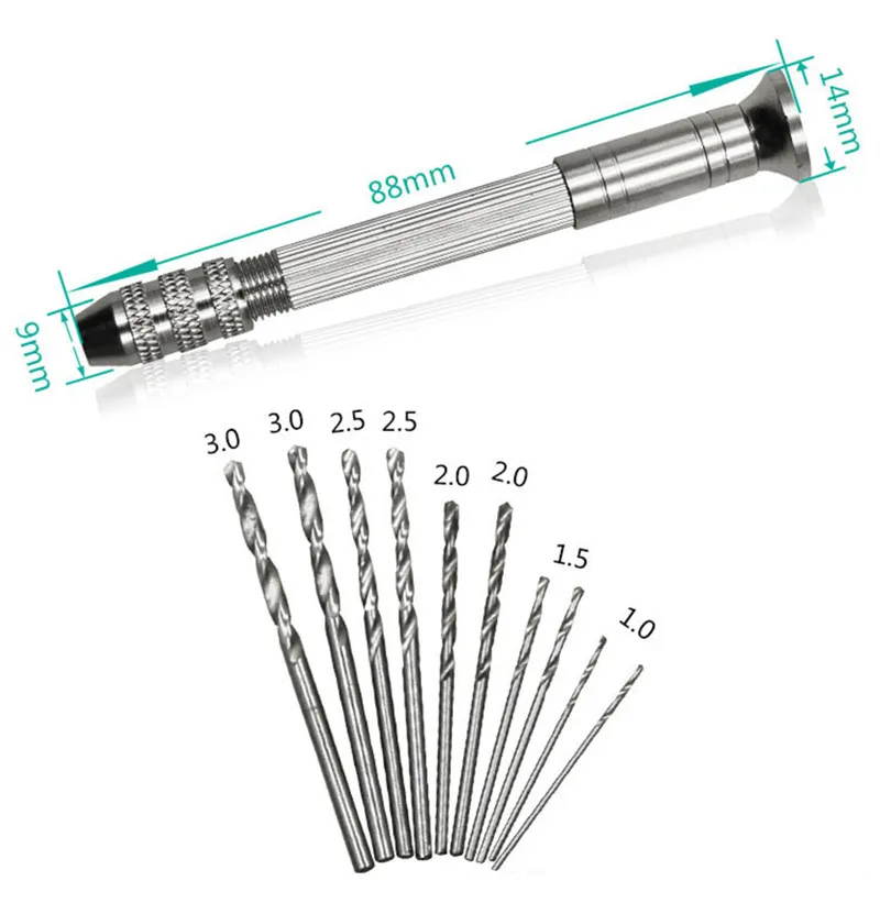 Ручная дрель из алюминиевого сплава, 1,0-3,0 мм, ручное сверление, развертка, сверление сделай сам, для изготовления украшений вручную, сверление по дереву, 1 комплект