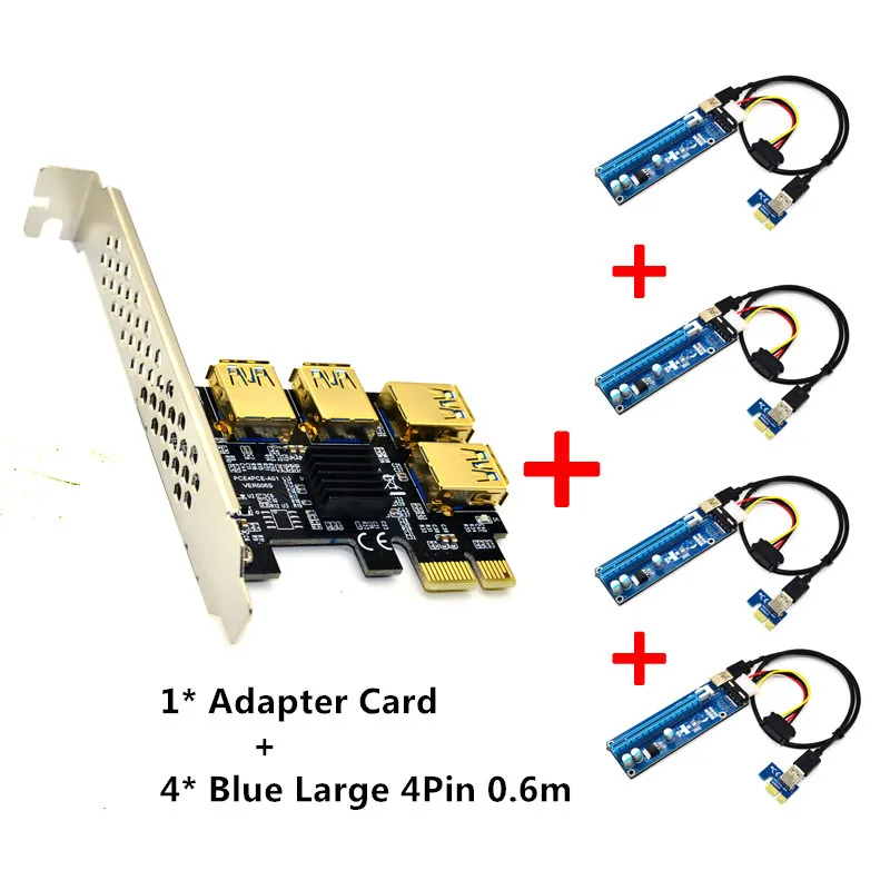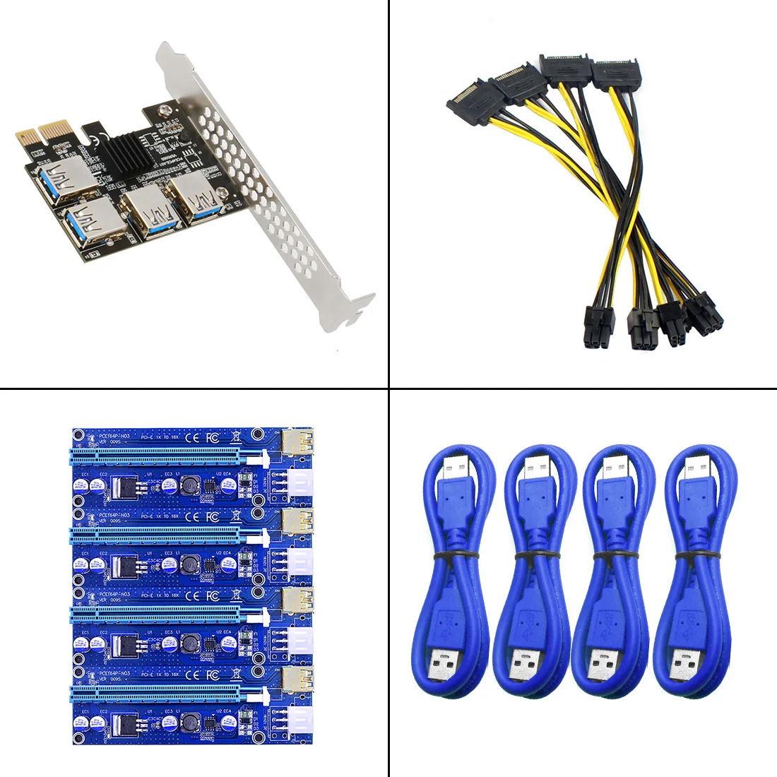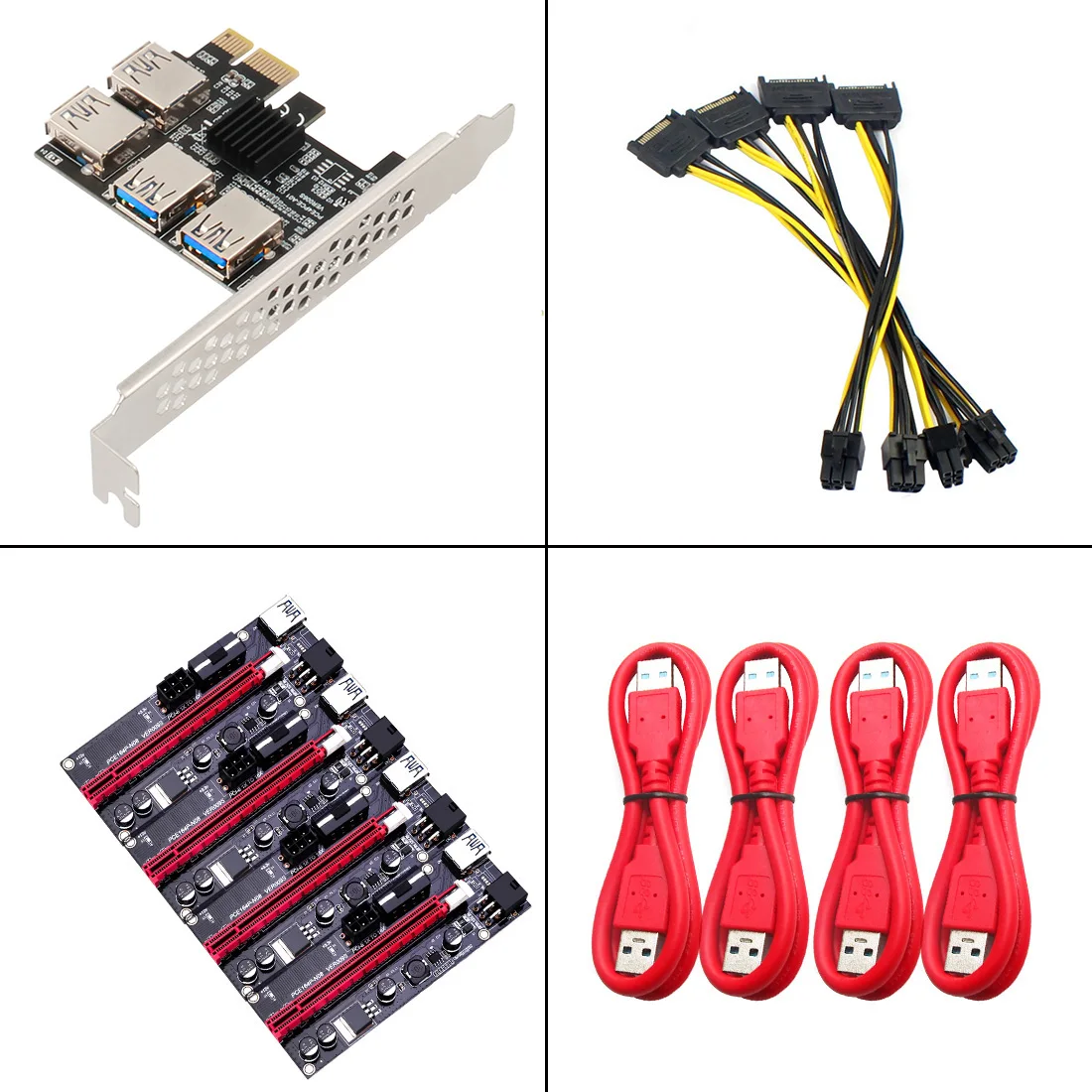PCIe Riser Card 1X 4x 8x 16x Extension Mining PCI Express USB Dual 6Pin Adapter Card SATA 15pin to 6pin for BTC Miner