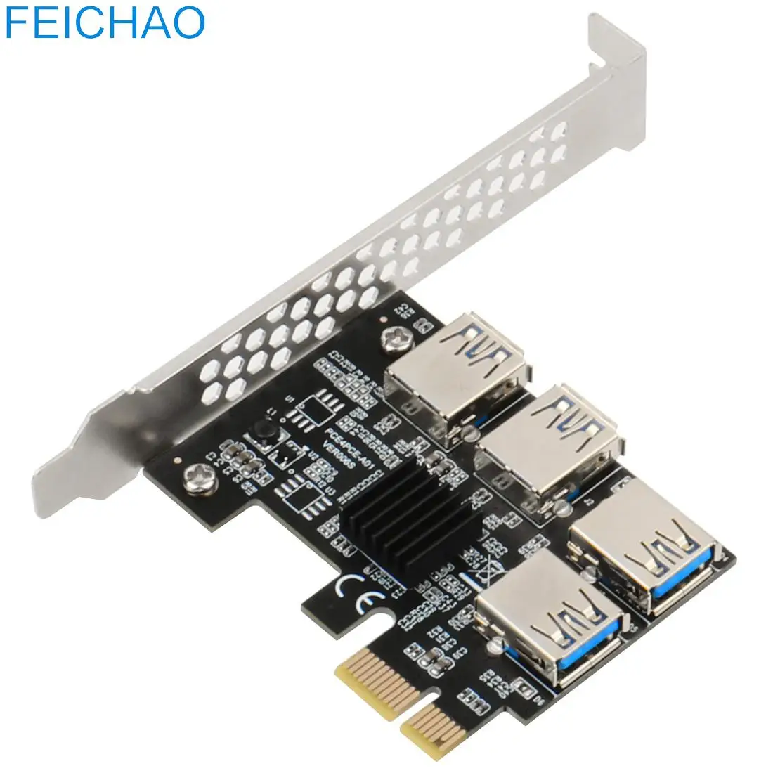 Переходная плата PCIE, золотистая, с 1 на 4 USB 3,0, мультипликаторный концентратор PCI Express 1X на 16X, адаптер 6Pin 4Pin для компьютера, PCI-E на USB3.0
