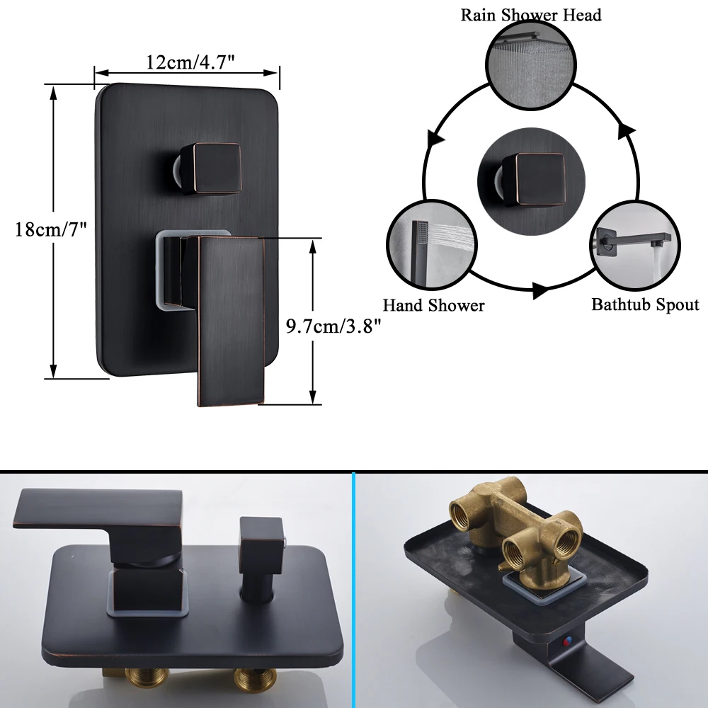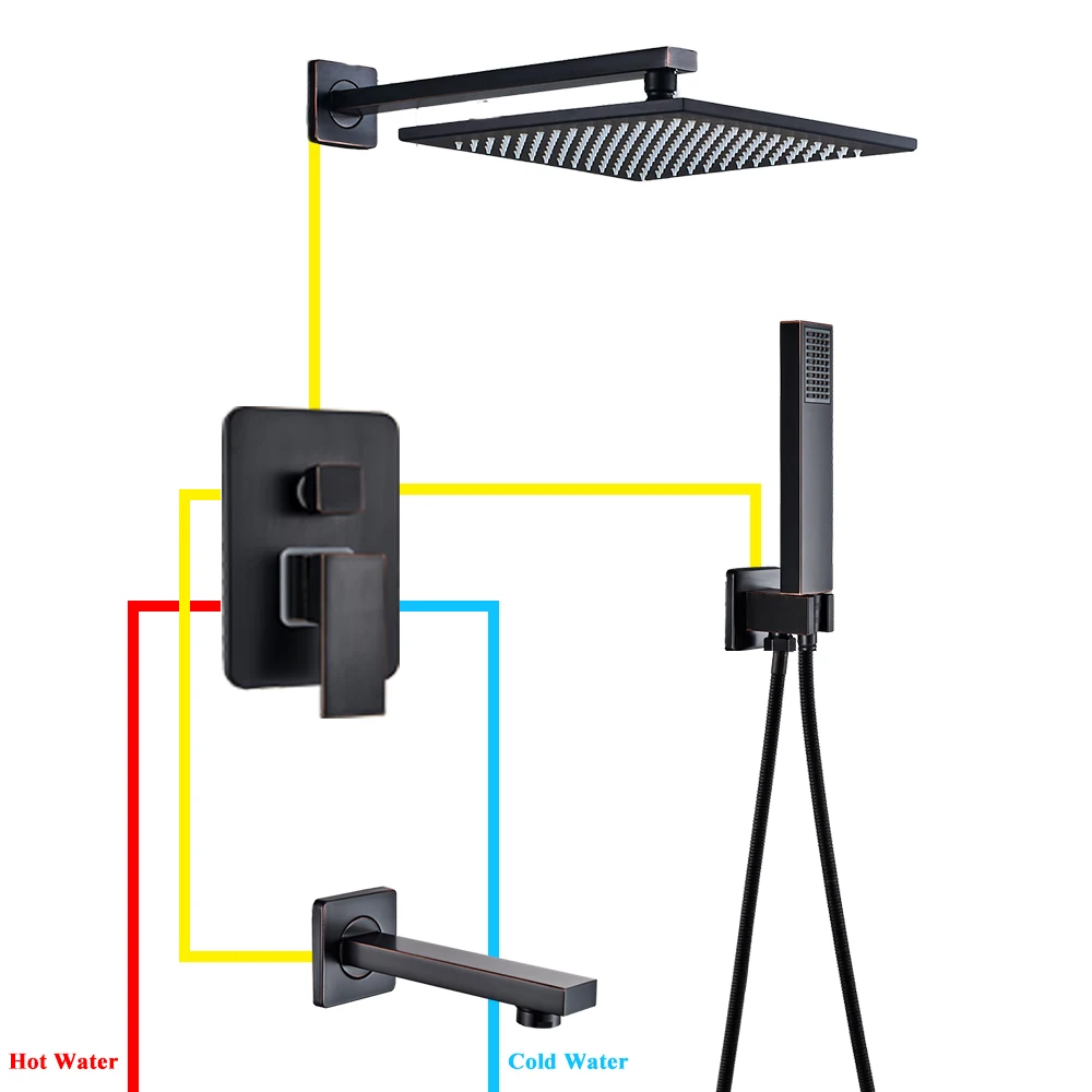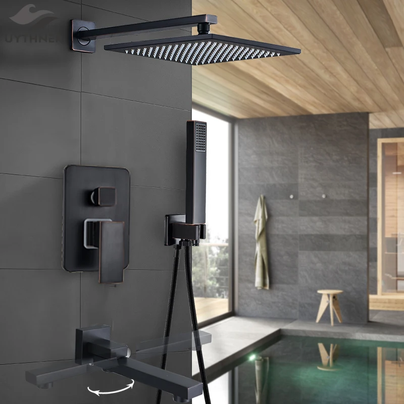 Дождевая Душевая система Uythner, смеситель для ванной комнаты из черной бронзы, настенный кран для ванны