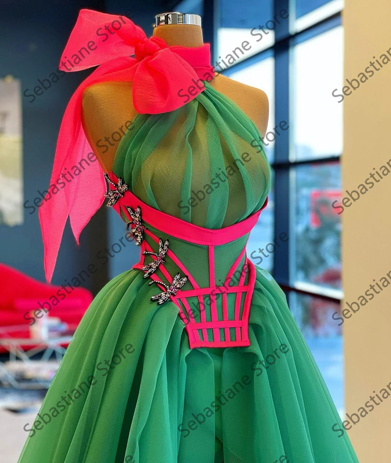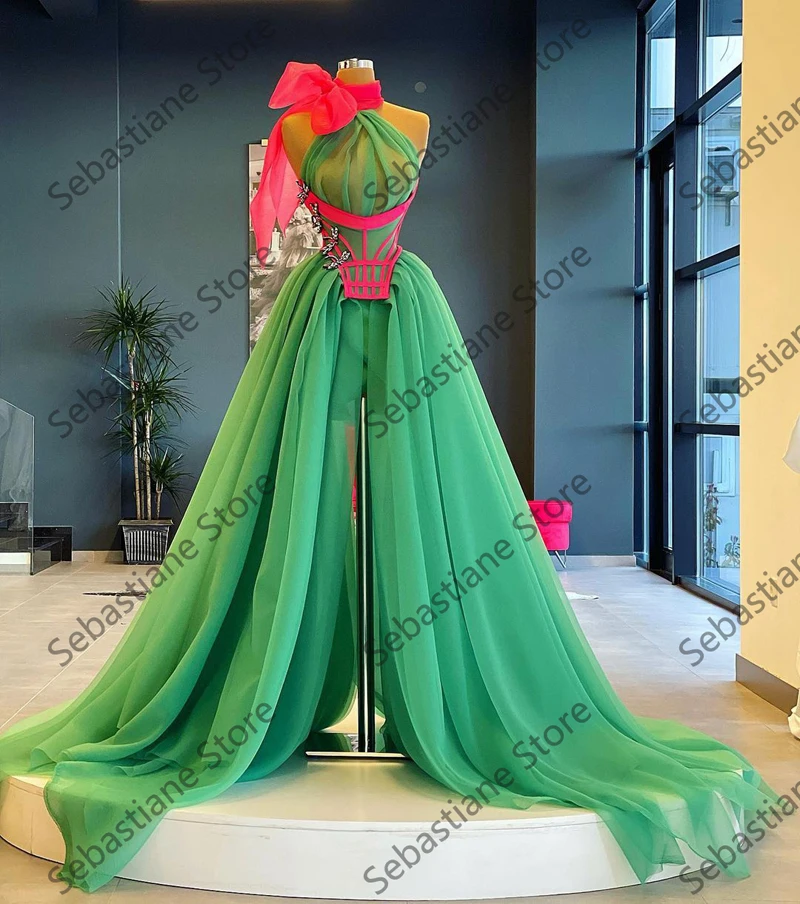 Женское длинное вечернее платье, элегантное фатиновое платье с бантом, высоким воротом, оборками и шлейфом, разноцветное платье на заказ для выпускного вечера