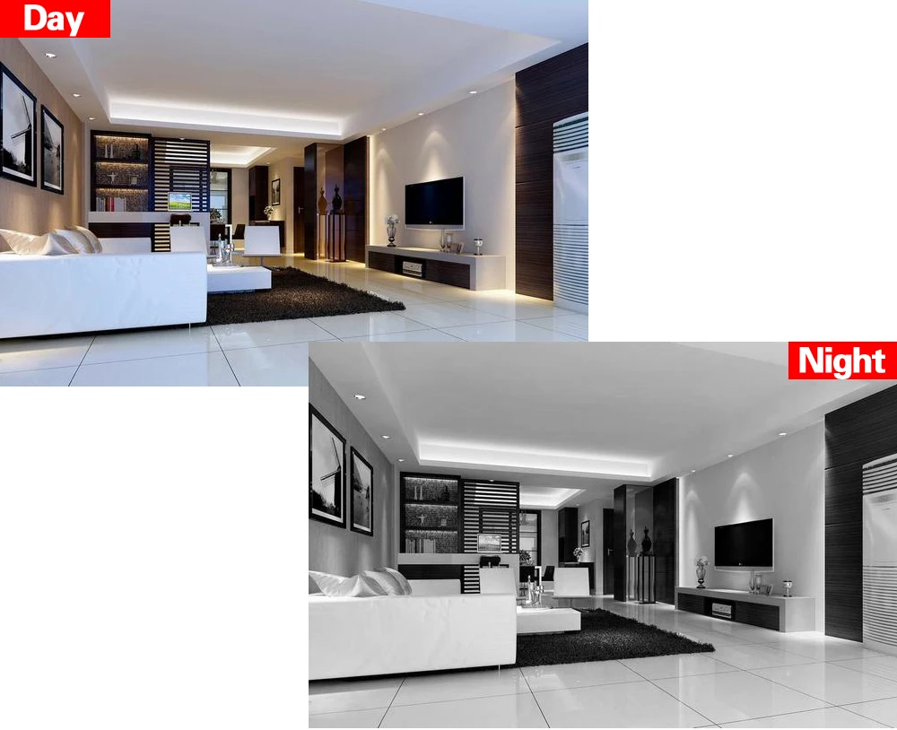 Умный фильтр, отсекающий ИК-спектр автоматически переключается между днем и ночью, чтобы уменьшить цвет в дневное время и повысить яркость изображения ночью, убедившись, что вы можете получить яркие кадры наблюдения от рассвета до темноты.