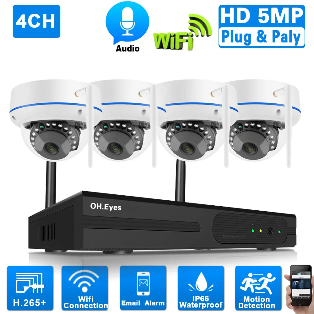 5-мегапиксельная наружная купольная камера безопасности с Wi-Fi, комплект беспроводной системы видеонаблюдения, 4-канальный комплект Wi-Fi NVR, домашняя система видеонаблюдения, комплект камер H.265