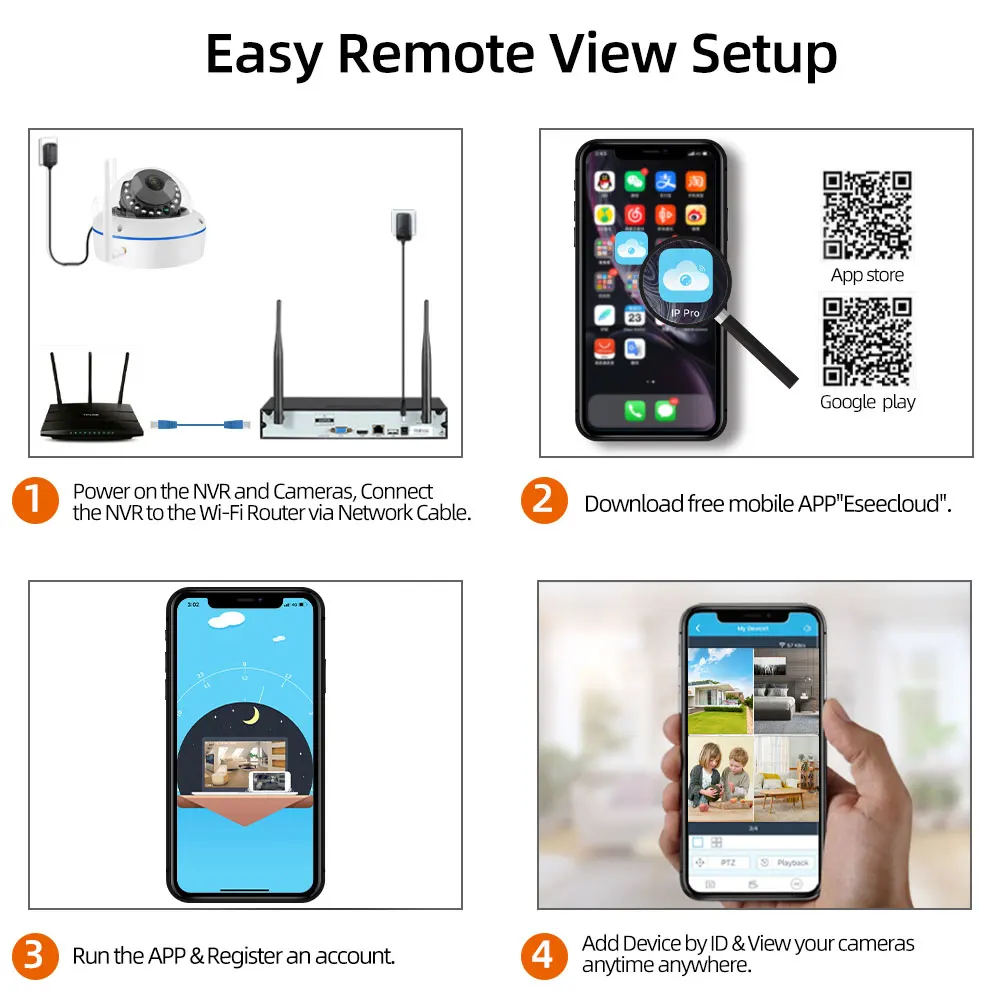 Супер Простая установка и конфигурации. Реальные подключи и играй, нет необходимости в каких-либо профессиональных навыков, вы можете полностью сделать это самостоятельно без усилий и построить свою собственную систему наблюдения.