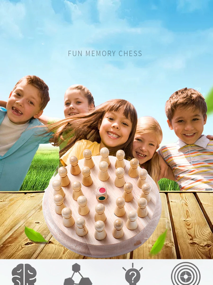 Детская деревянная игра в шахматы с памятью, настольная игра с заба...