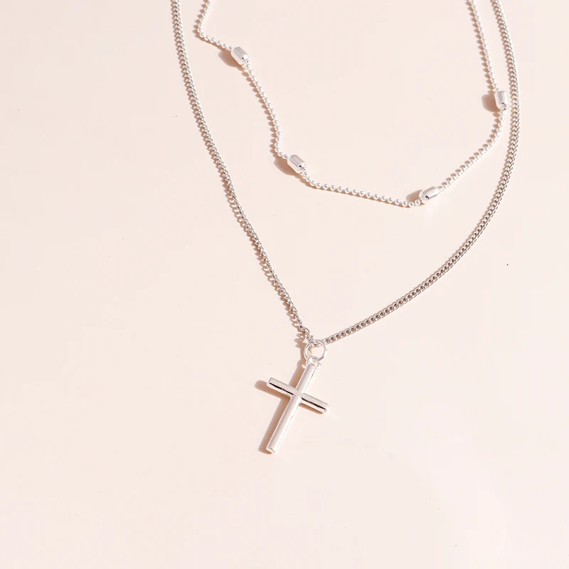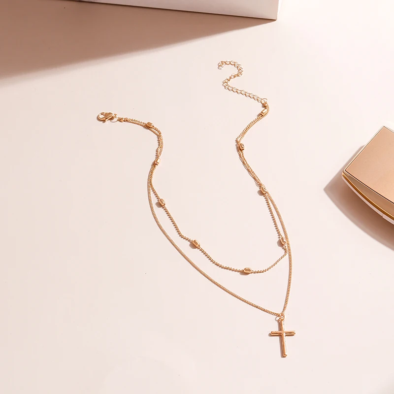 Романтическое ожерелье с подвеской-крестом для женщин, многослойное овальное ожерелье-цепочка золотого и серебряного цвета, минимализм, женская бижутерия