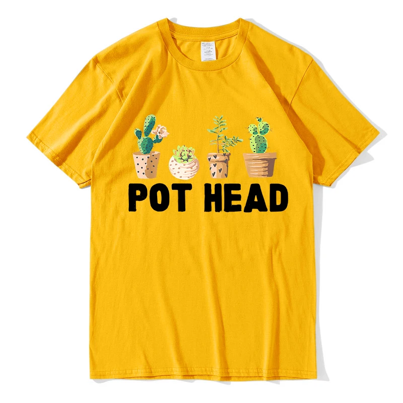Футболка мужская с забавным КАКТУСОМ, хлопковая тенниска с изображением головы горшка, топ для сада, суккулента, Повседневная Уличная одежда унисекс, 3xl