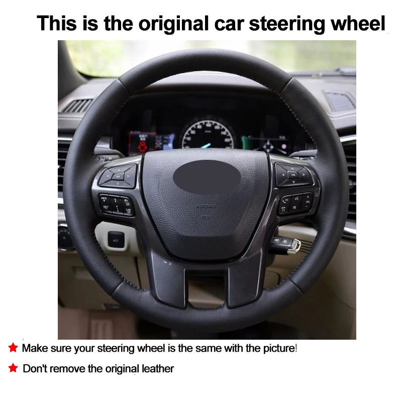 Рука шить чехол рулевого колеса автомобиля Обёрточная бумага для Ford Ranger 2016 2017 2018 2019 2020 2021 принципиально оплетка на руль