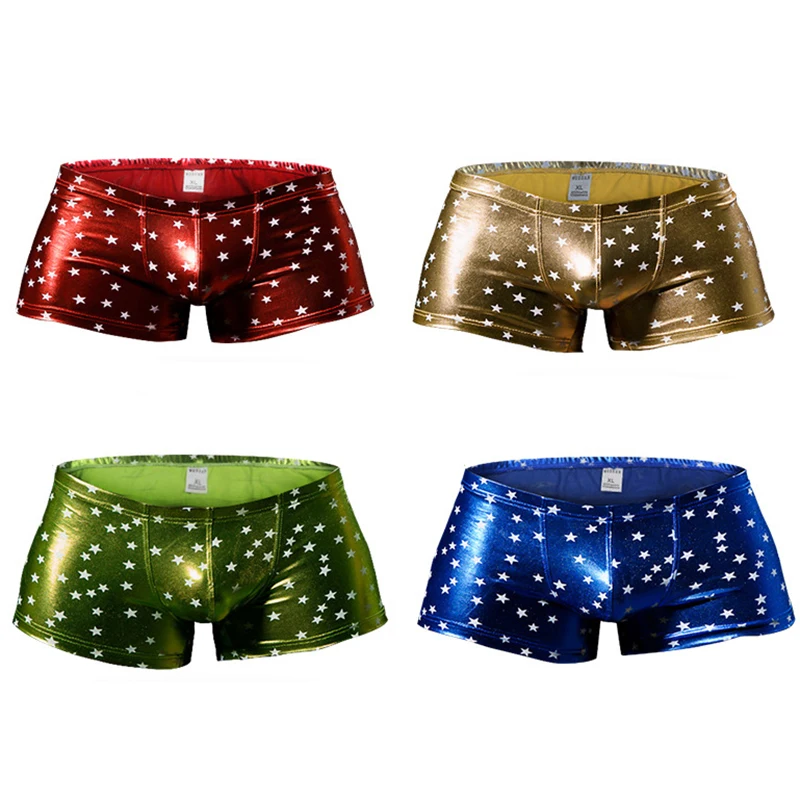 Мужское нижнее белье, боксеры, сексуальные шорты из искусственной кожи, трусы, обтягивающие боксеры для мальчиков, атласные шорты, плавки, мужские сексуальные трусы