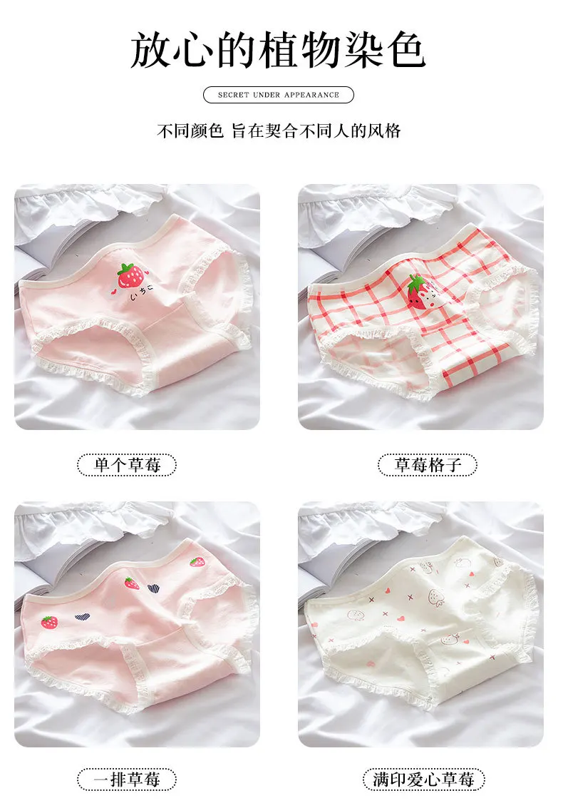 Хлопковые трусы с рисунком клубники, женское нижнее белье, милые тр...