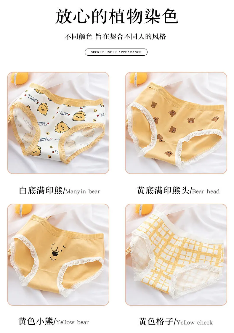 Трусы женские хлопковые, с изображением медведя из мультфильма, M-XL