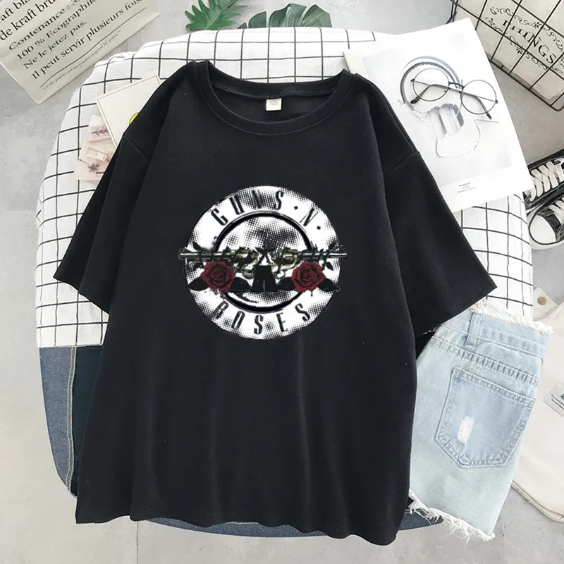 Футболки пистолеты и рок-группа, розы футболки для женщин летние большие футболки женские летние топы женские футболки Эстетическая одежда