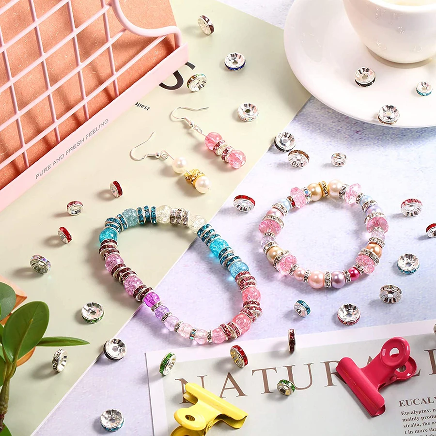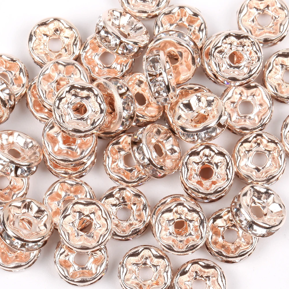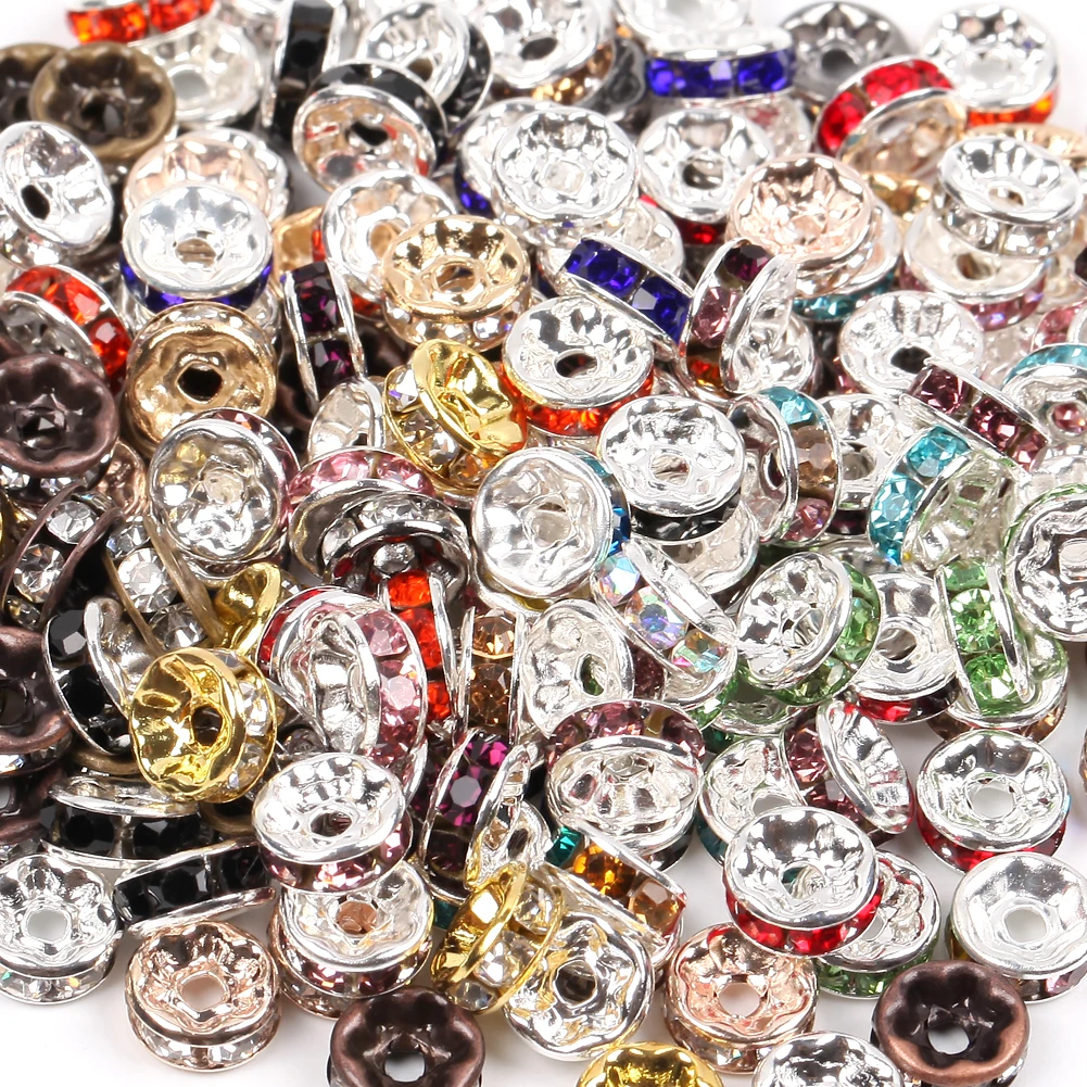 Бусины с кристаллами Рондель для изготовления ювелирных изделий, серебряные бусины с отверстием, золотистый металл со стразами, 46810 мм, аксессуары для браслетов сделай сам, 50 шт.