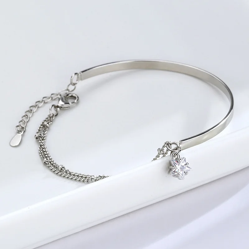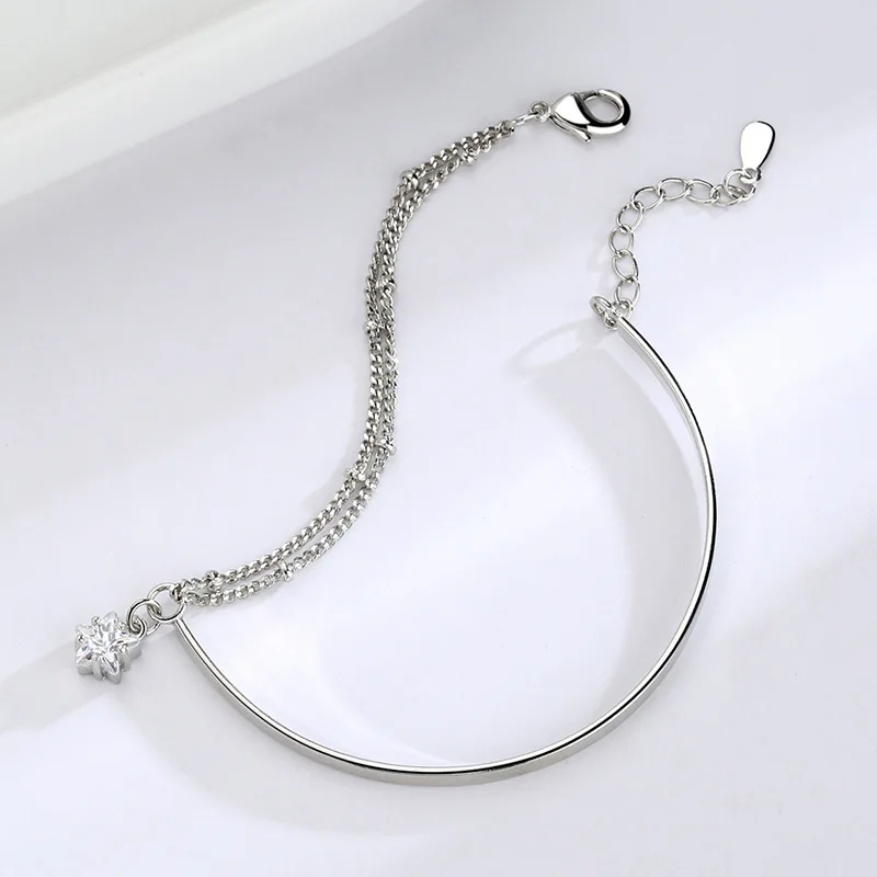 Женский браслет серебристого цвета с подвеской в виде креста и звезды