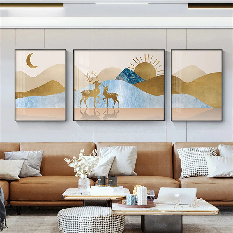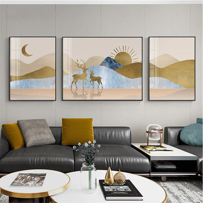 Скандинавский абстрактный золотой настенный холст, плакаты с принто...
