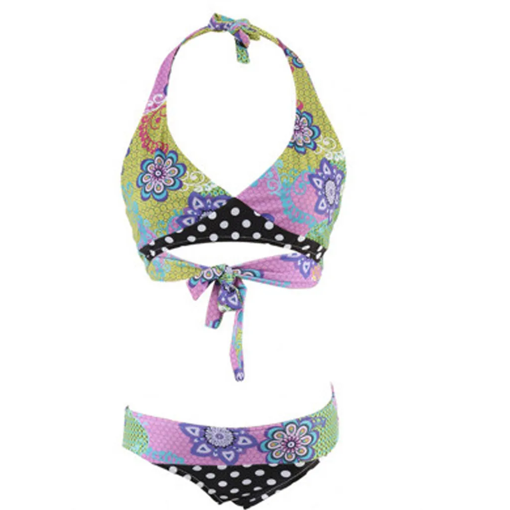Женский комплект бикини с цветочным принтом, купальные костюмы из двух предметов, купальный костюм, пляжный костюм