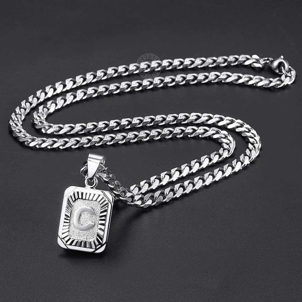 Цепочка с подвеской HGPM11 для мужчин и женщин, ожерелье из нержавеющей стали с кубинской цепью из кубинской панцирной цепи, 5 мм, цвет серебро, алфавит, начальная буква, A-Z