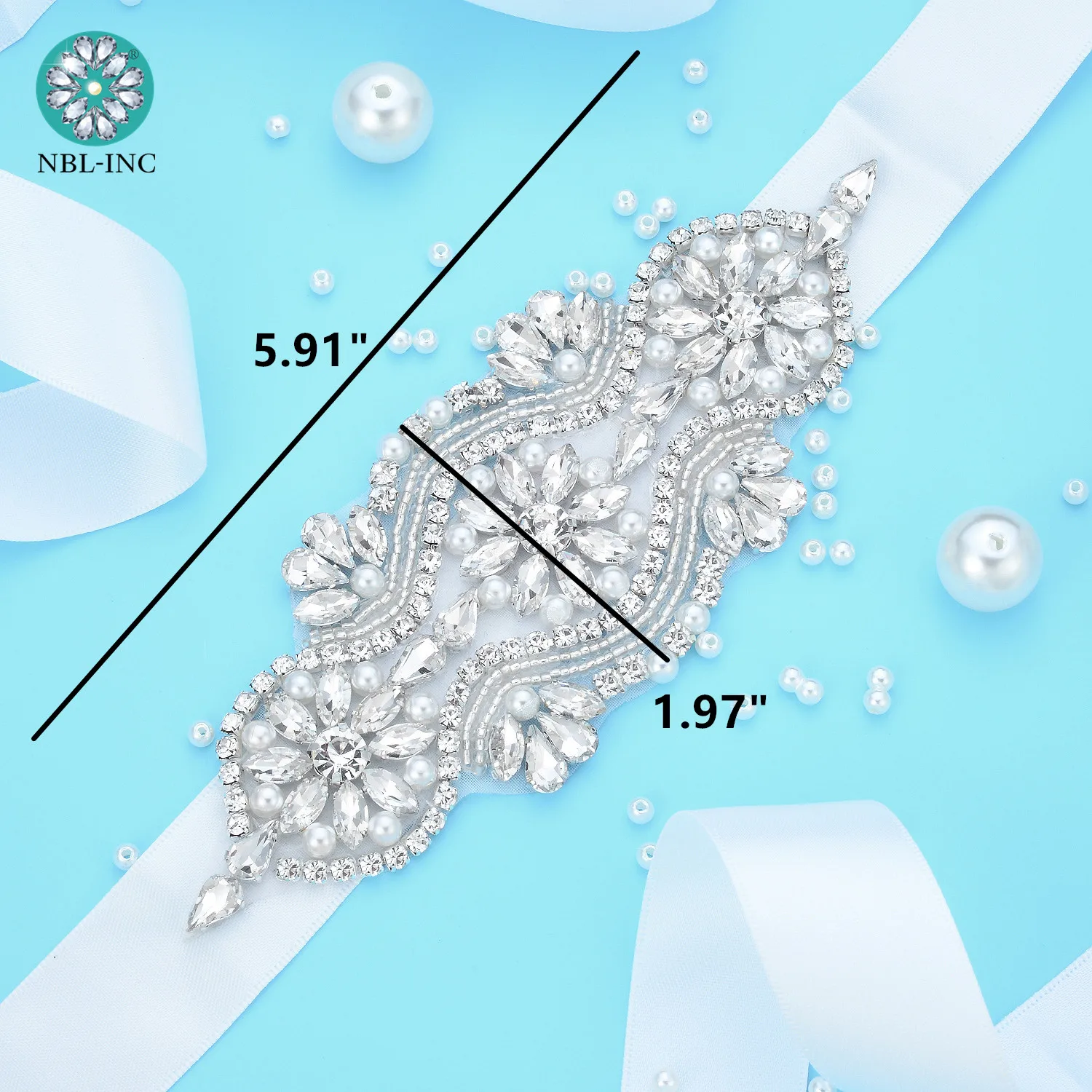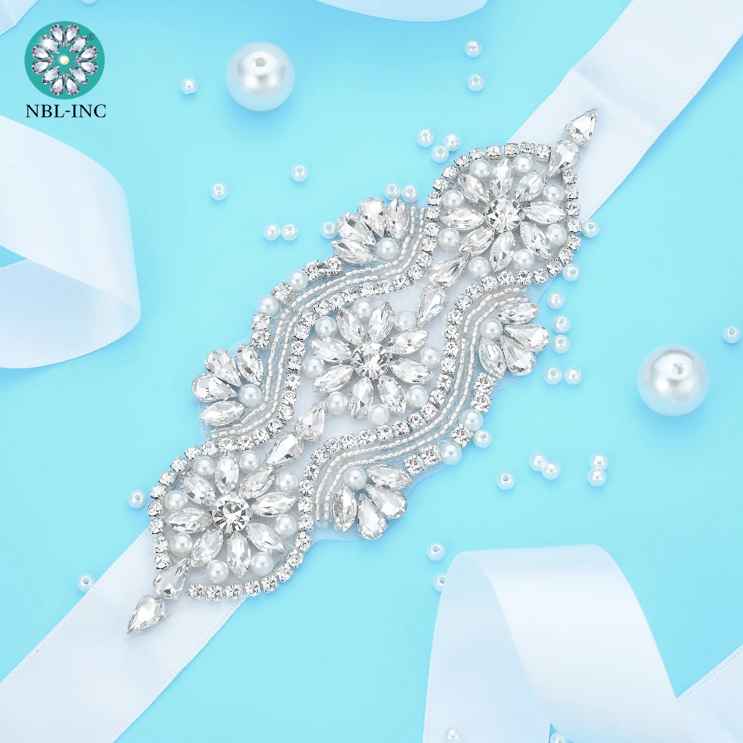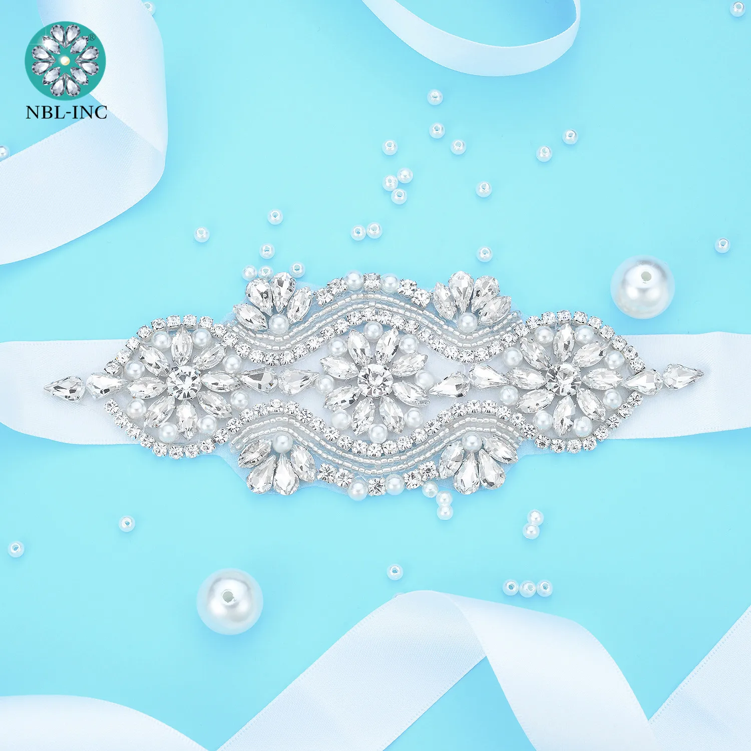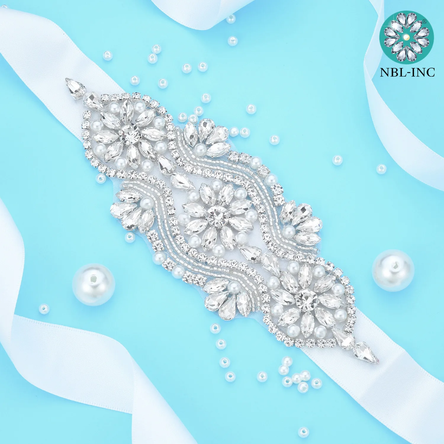 (1 шт.) Свадебный Серебряный Кристалл Стразы Жемчуг Аппликация Пояс...
