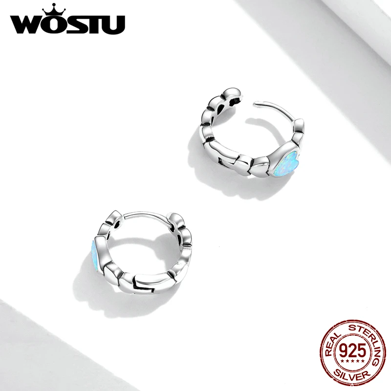 WOSTU Настоящее 925 стерлингового серебра опал сердце любовь серьги-кольца для женщин модная свадебная стерлингового серебра ювелирные изделия CQE1137