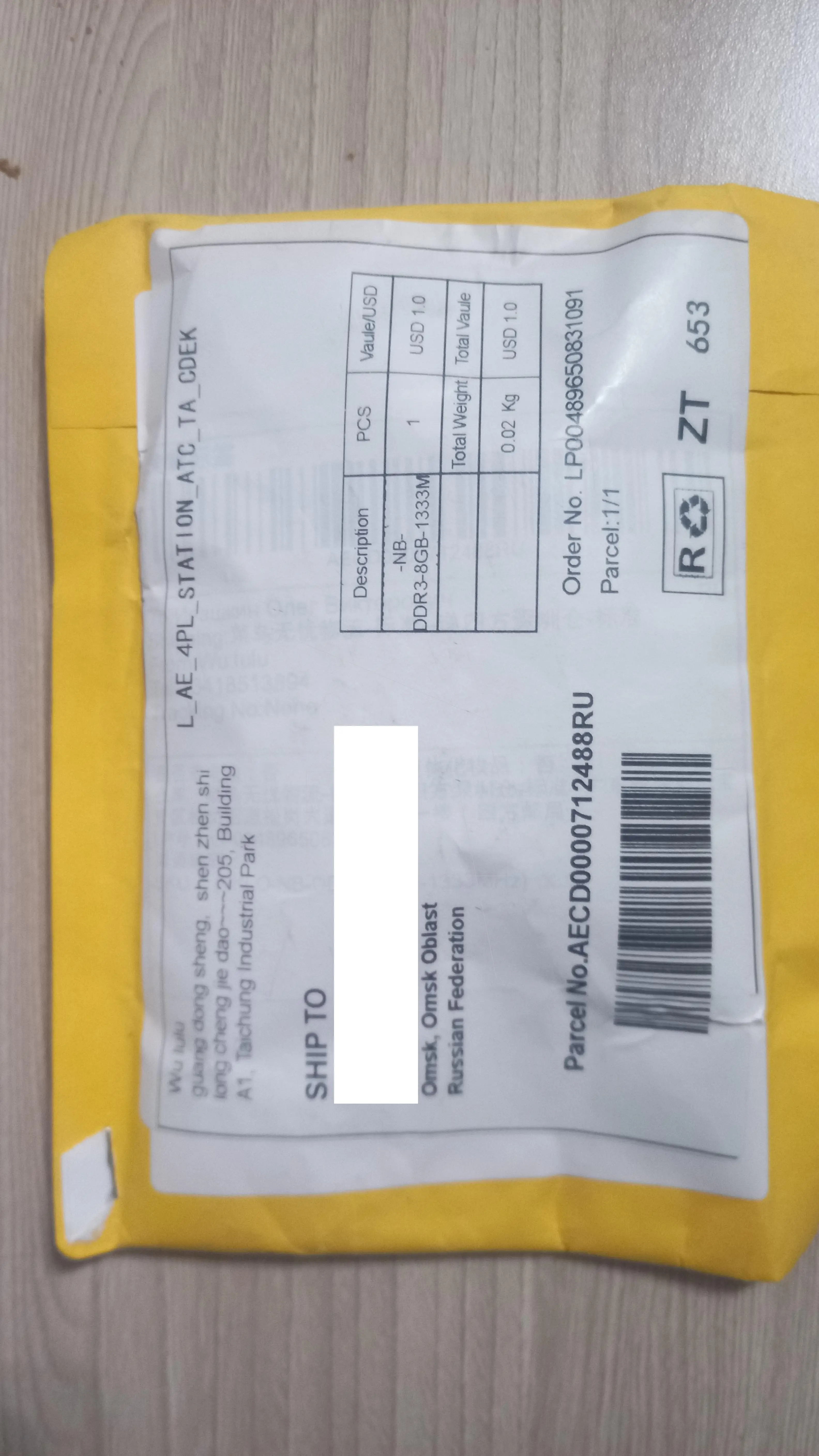 до Коми пришел товар в пятерочку за 2 недели. Оперативка подошла, комп видит 2 гб