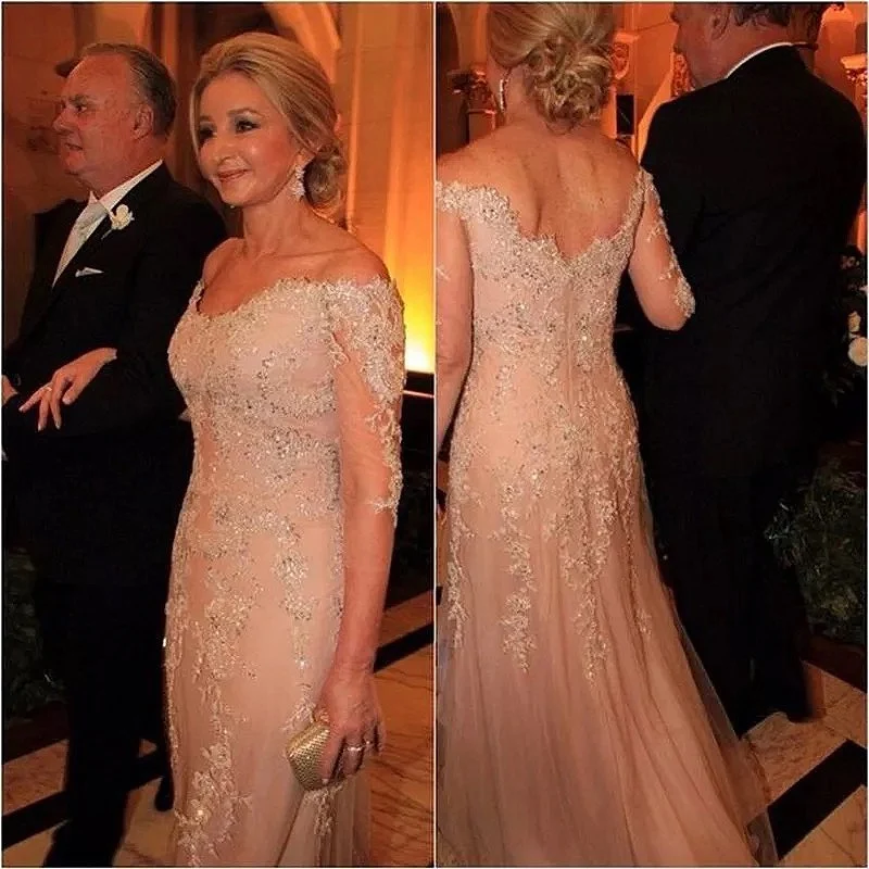 Платье для матери невесты а-силуэта, официальное кружевное вечернее платье с V-образным вырезом, с рукавом три четверти, с вырезом лодочкой, праздвечерние чное платье телесного цвета