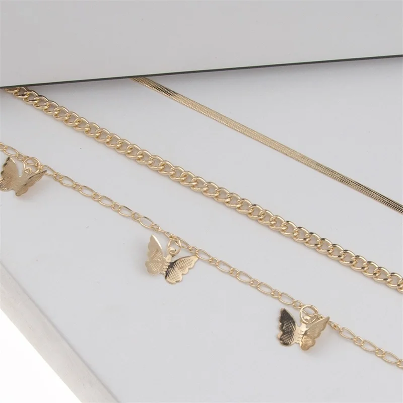 Богемные золотые цепочки-бабочки, набор ножных браслетов для женщин, модные многослойные ножные браслеты для ног, браслет для пляжа, 2021, ювелирные изделия