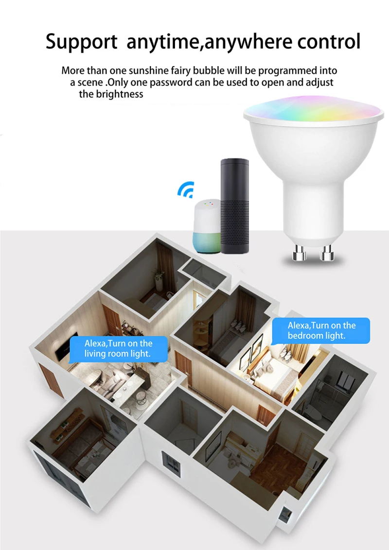 Поддержка Amazon Alexa, google home, Tmall Genie, голосовое управление IFTTT, дистанционное управление мобильным приложением, синхронизация, затемнение и регулировка цвета 16 миллионов цветов. Совместимость с Amazon alexa, google home, Tmall Genie, Ding Dong и app IFFTTT. Функция памяти, голосовое управление и режим сцены. Wifi Интеллектуальный светодиодный светильник с дистанционным управлением лампы использует светодиодный источник света, его потребление энергии составляет 20% от традиционного, и его срок службы более чем в 10 раз больше, чем у энергосберегающих ламп. Умная лампа-лампочка wifi проста и удобна в установке и использовании, безопасна и стабильна и обеспечивает интеллектуальный эффект освещения ламп, который является энергосберегающим и экологически чистым.