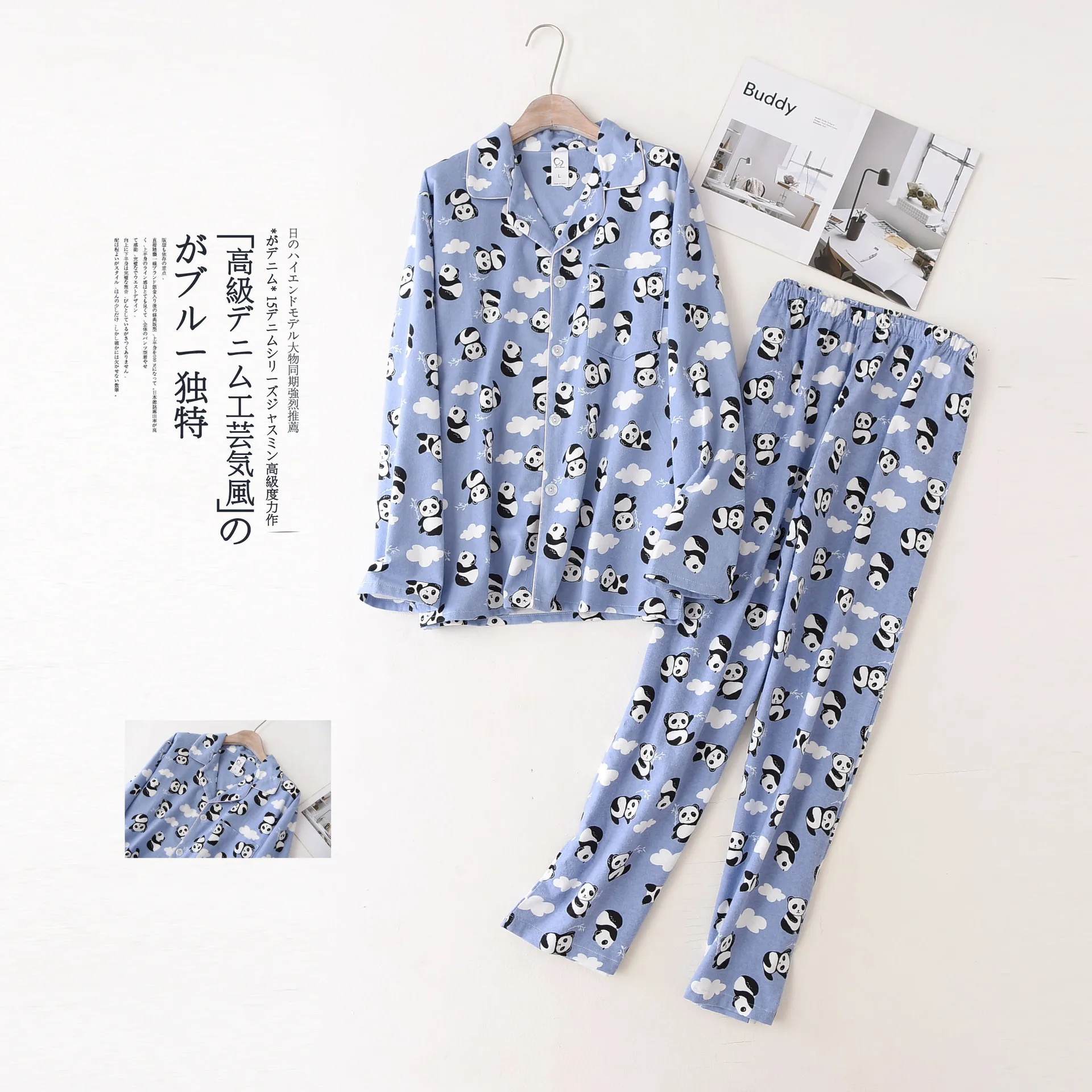 Пижамный комплект мужской с пандой, одежда для сна, 100% хлопок, повседневная одежда для сна с длинным рукавом, Мужская пижама, весна