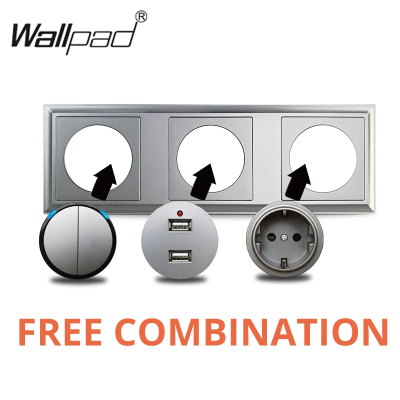 Wallpad L6, серебристая алюминиевая серая панель, Двойные USB-розет...