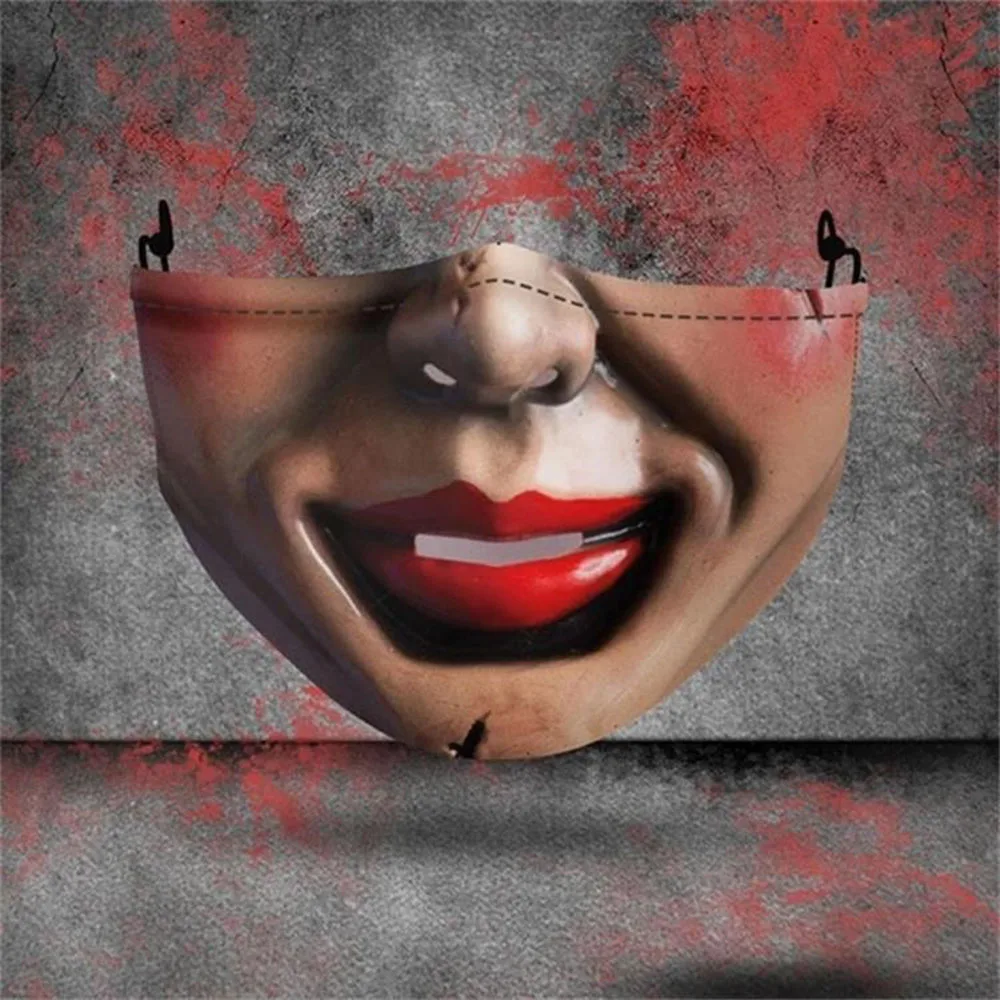Маски для лица на Хэллоуин с ужасным принтом гримаса для мужчин жен...