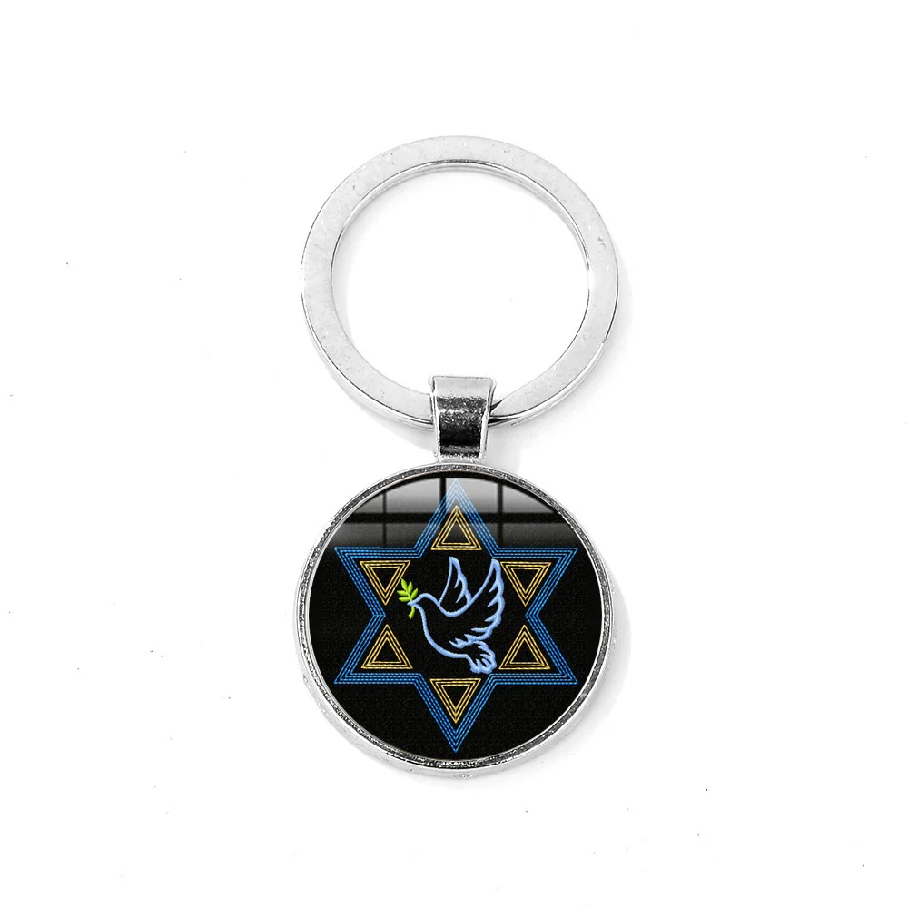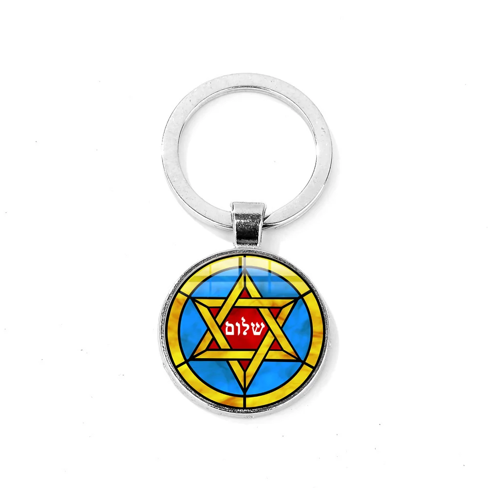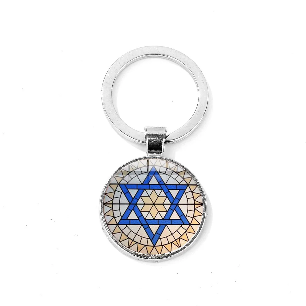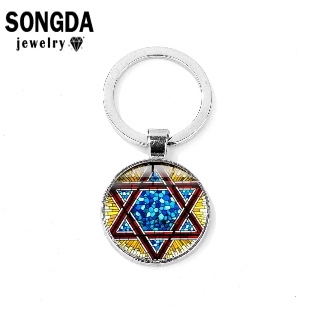 SONGDA Звезда Давида брелок прозрачный Стекло купол с печатным рисунком брелок шесть ноль амулет со звездой Религия символ Израиль кулон