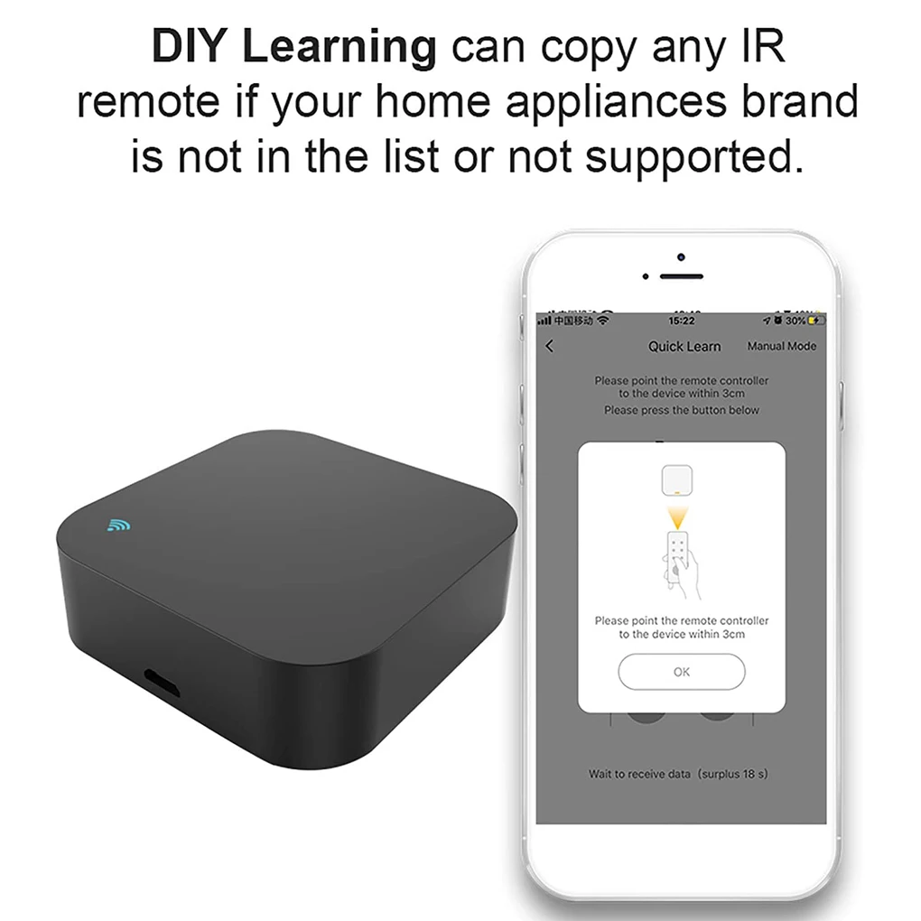 Умный беспроводной ИК-пульт дистанционного управления S06 Pro оснащен датчиком влажности и температуры и может отображаться в режиме реального времени.Этот умный ИК-контроллер WiFi поддерживает Голосовое управление и совместим со многими типами голосовых помощников.Этот ИК-контроллер голосового управления поддерживает мобильный телефон. Вы можете использовать телефон для управления ИК-контроллером практически из любого места.Этот умный ИК-Контроллер оснащен функцией таймера и позволяет установить расписание для управления бытовой техникой.Этот универсальный инфракрасный контроллер может управлять многими видами вещей, такими как телевизор, ТВ-приставка, кондиционер и т. д.