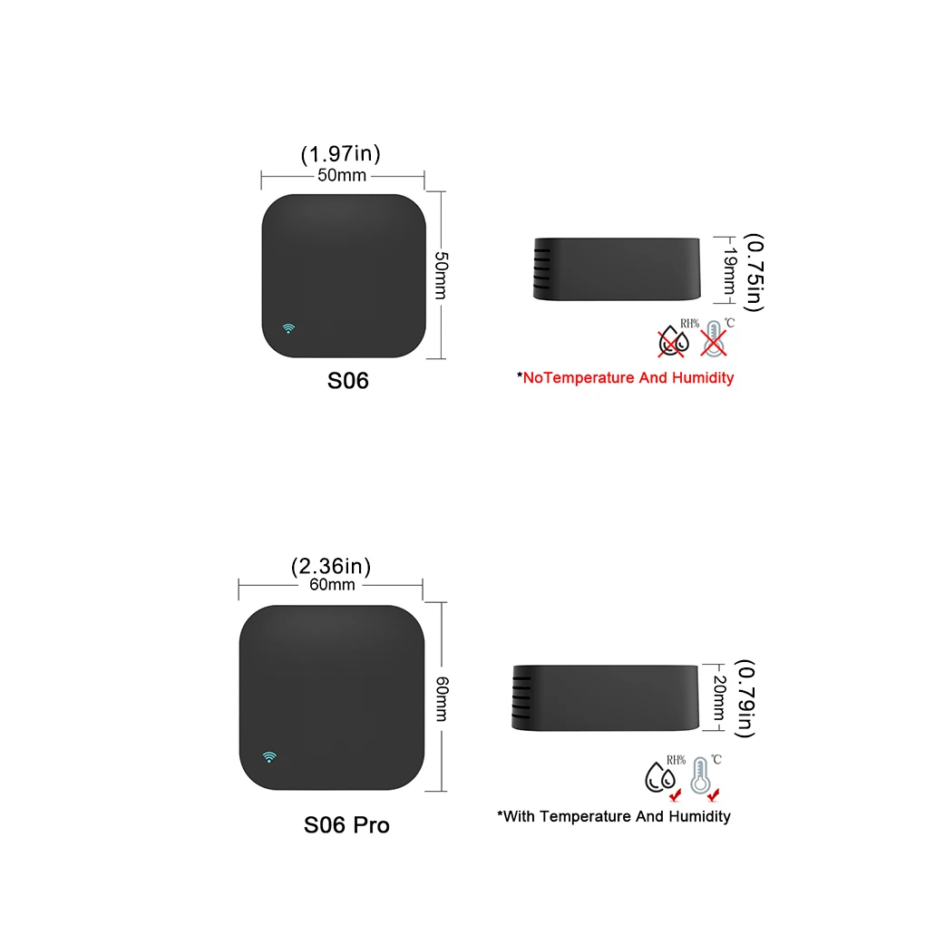 Характеристики:Материал: АБС-пластик.Цвет: черный.Вход: 5 В/1 а постоянного тока.ИК частота: 38 кГц.Wi-Fi частота: 2,4 ГГц (не использовать во время 5,0 ГГц)Поддерживаемые ОС: замена для Android 4,4 и выше, замена для iOS и выше.Размер: S06 Pro: 60x60x20 мм, S06: 50x50x19 мм.