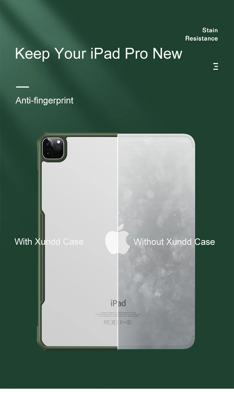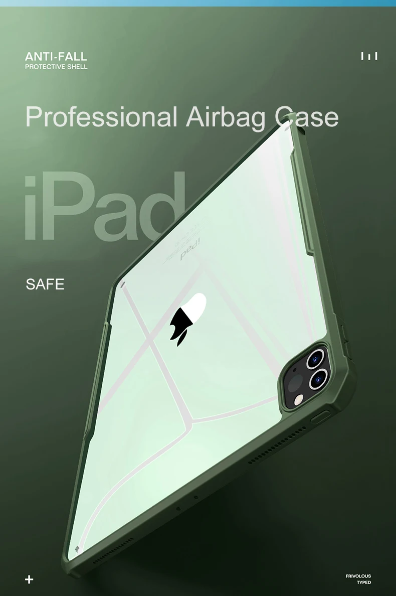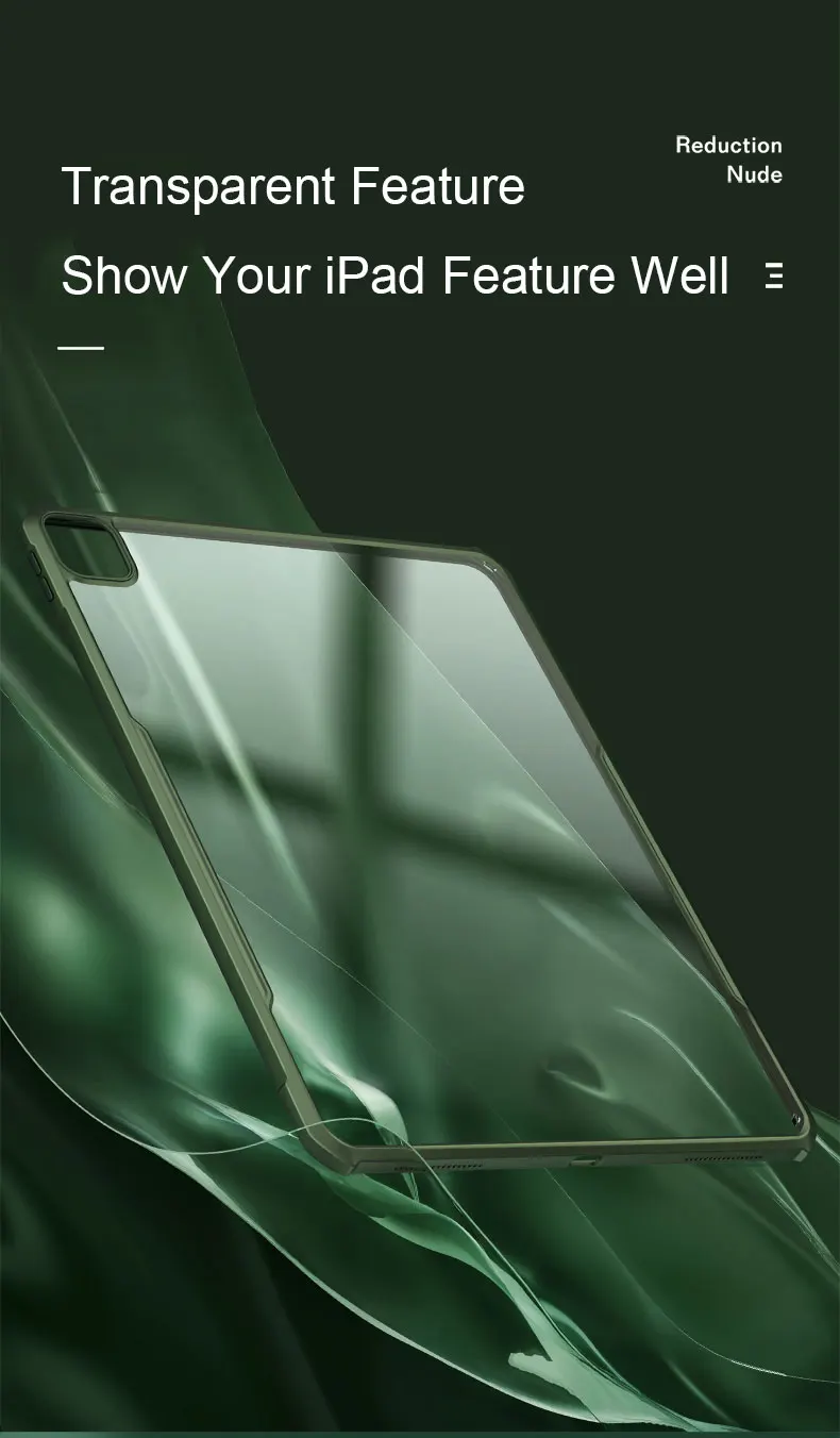 -Подходит для зарядки Apple Pencil -3 цвета на выбор: черный, синий и зеленый -Специальная конструкция защита, подушка безопасности может поглощать удары, а затем защитить ваше устройство при падении на землю -Конструкция на 0,8 мм выше может защитить ваш экран и камеру при падении -Вес 0,08 кг, можно удерживать устройство одной рукой -Индивидуальная Кнопка обеспечивает точное сотрудничество -Теплоотдача тепла наружу -Мягкий материал защищает ваше устройство от царапин -Прозрачный чехол не закрывает ваше устройство