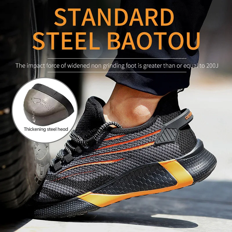 Дышащая Уличная обувь со стальным носком Мужская безопасная обувь, ...