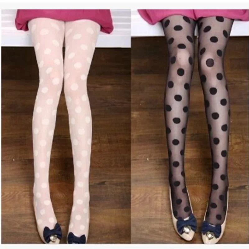 Сексуальные колготки Для женщин колготки черный, белый цвет крупный горох Бесшовные прозрачные тонкие чулки эластичные колготки Колготки Чулочно-носочные изделия