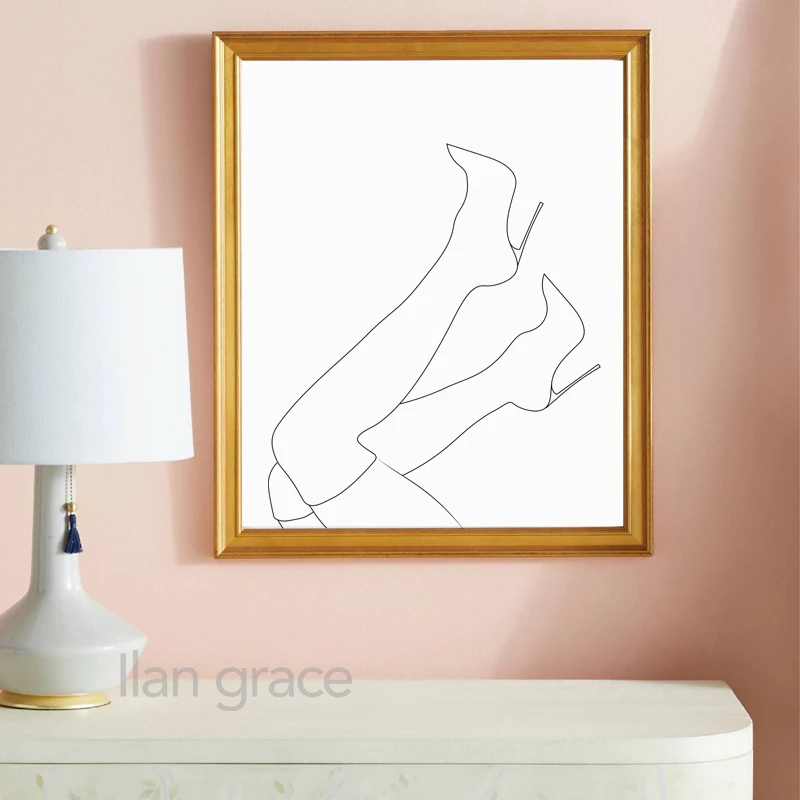 Черный, белый цвет абстрактные элегантной женской обуви ноги репродукции современный простой плакат спа-салон красоты настенные картины Картина на холсте, украшение