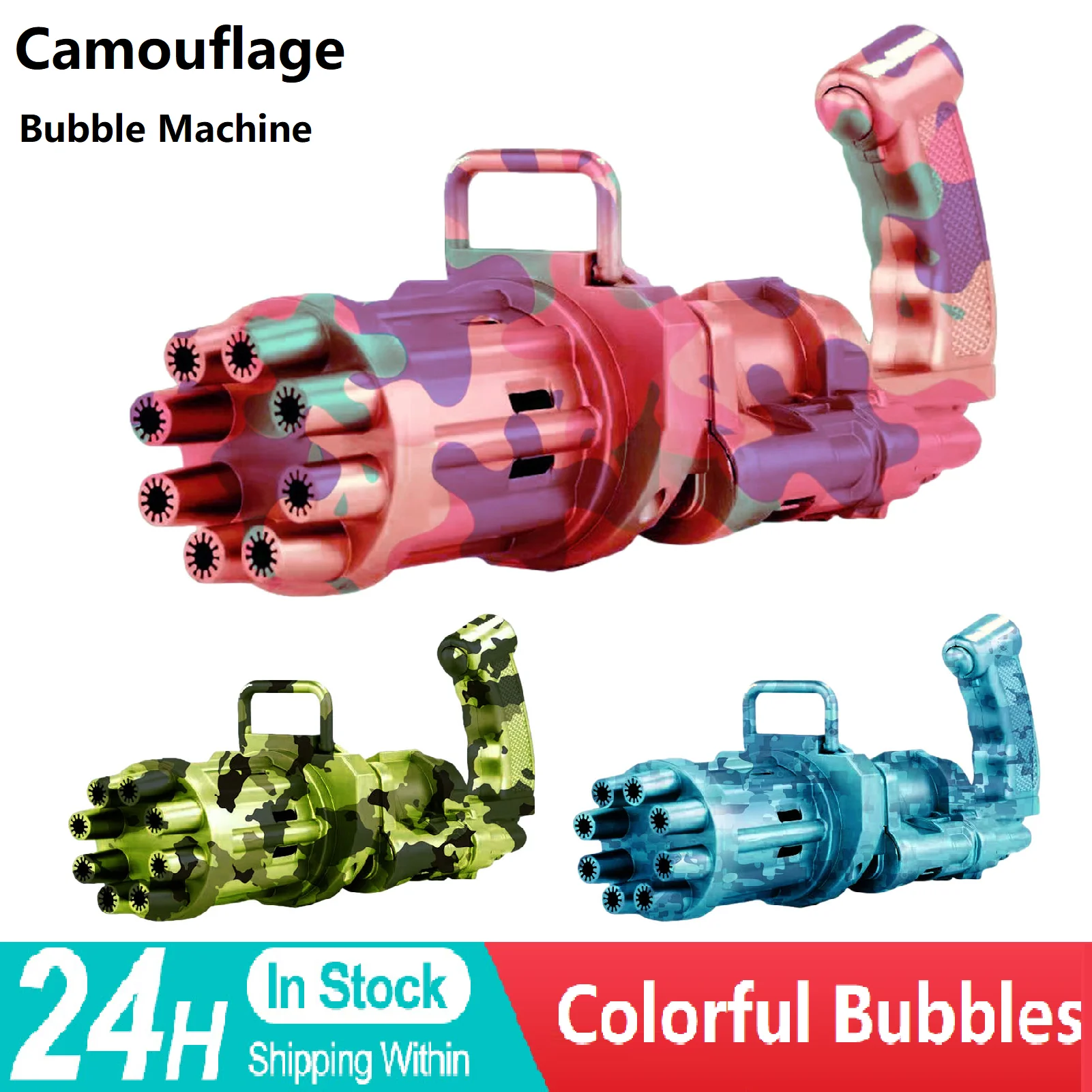 Пистолет для мыльных пузырей с 8 отверстиями, аппарат для мыльных пузырей, камуфляжная крутая игрушка для мыльных пузырей 2 в 1, электрический аппарат для пузырей для детей