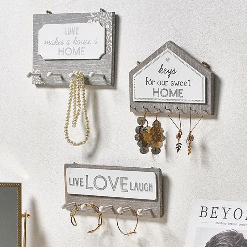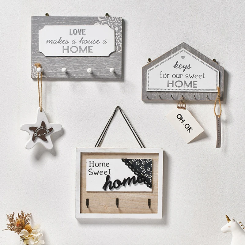 Настенный деревянный держатель для ключей, настенный органайзер, прямоугольная вешалка для ключей в форме дома, крючки для пальто, украшение для дома, вешалка для пальто
