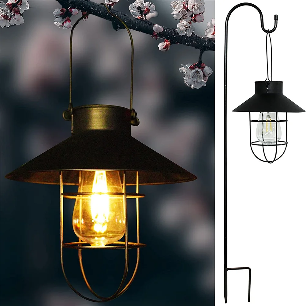 Винтажный светильник на солнечной батарее, Подвесная лампа с вольфрамовой лампой в стиле ретро, садовый светильник на солнечной батарее с S-образным крючком, уличная водонепроницаемая лампа для внутреннего дворика