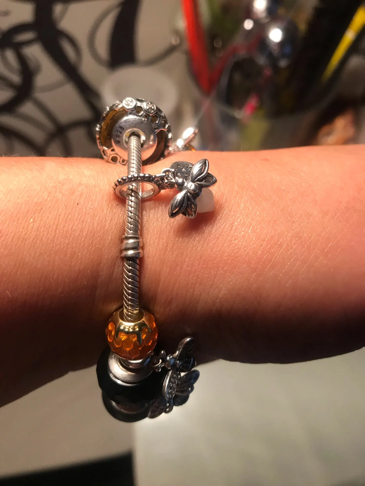 Высокое качество серебряные бусины 925 пробы пчела счастливым с аму...
