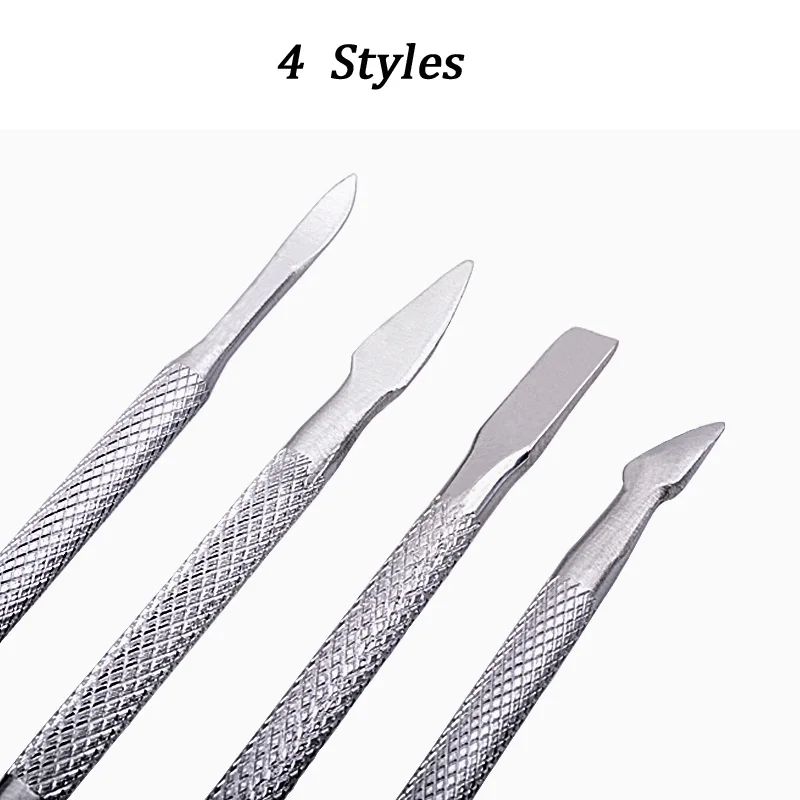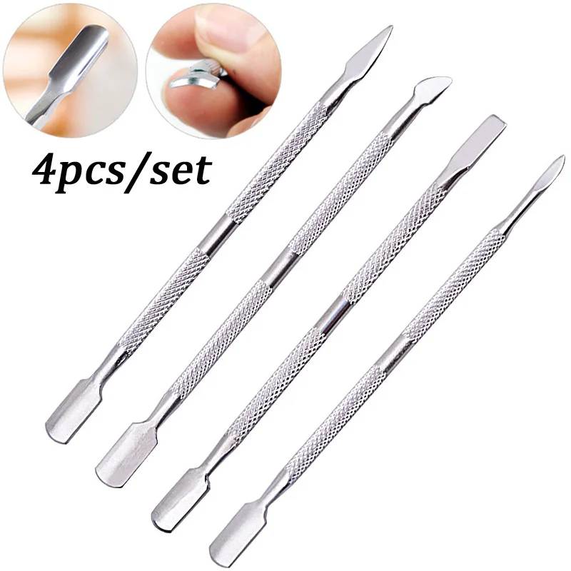 Хит, 4 шт.компл. Нержавеющаясталь с двумя концами для ногтей ложка-толкатель Romover для кутикулы маникюра педикюра Очиститель ногтей инструменты