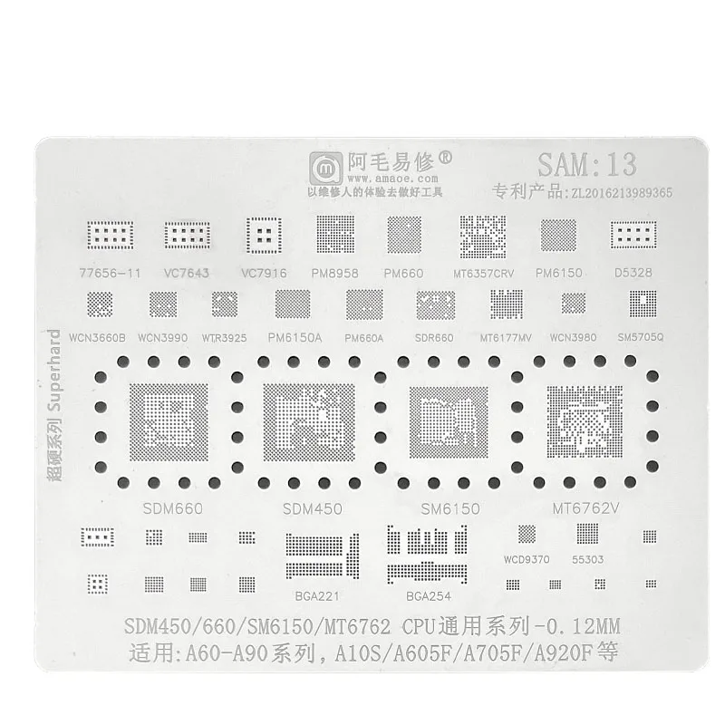 Трафарет Amaoe SAM13 BGA для Samsung A60-A90 SDM 450 660 SM6150 MT6...