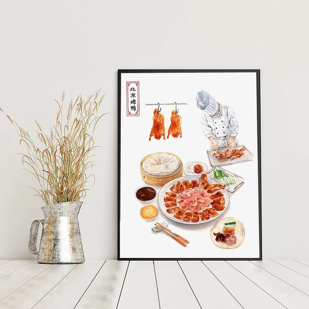 Современный кухонный декор, китайская, японская модель, утка Пекин, жареное яйцо, рисовый шар, суши, холст, живопись, Настенная картина, картины