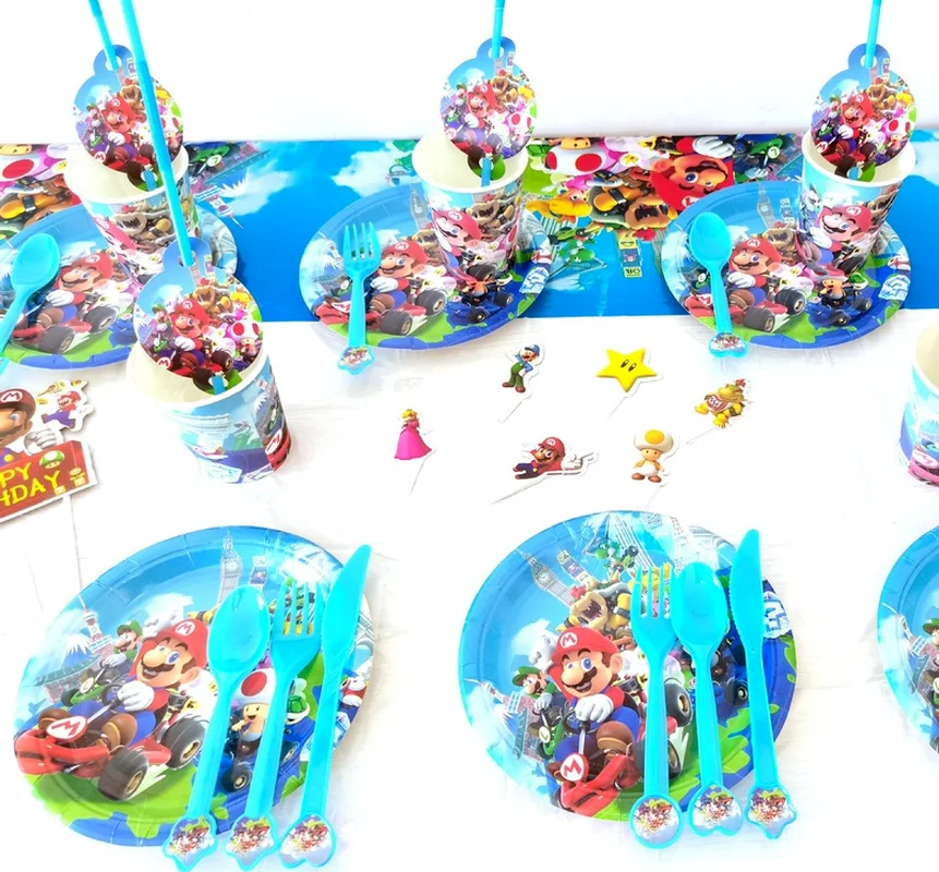 Набор одноразовой посуды для детей, с героями мультфильмов Супер Марио