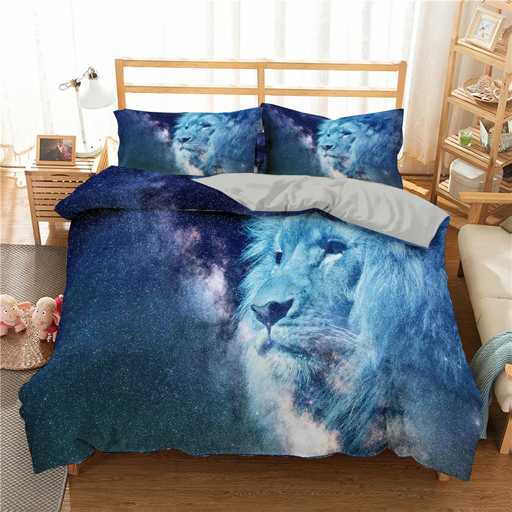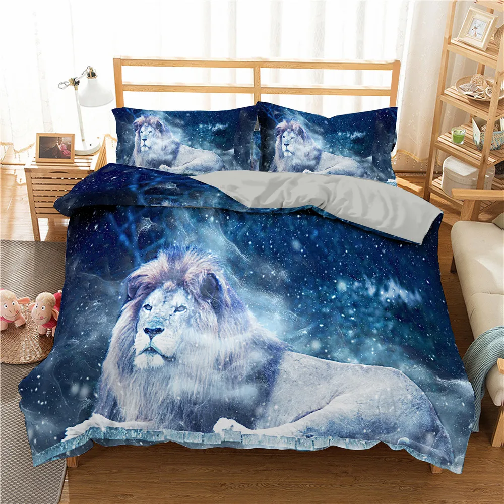 Роскошный комплект постельного белья с изображением Льва, пододеяль...