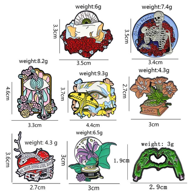 Брошь в виде цветка, черепа, глазного яблока, музыкальной шкатулки,...