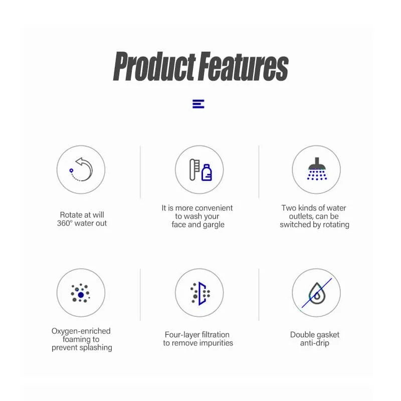 ПоворотВыход воды 720 °, более удобно мыть лицо и полоскать!