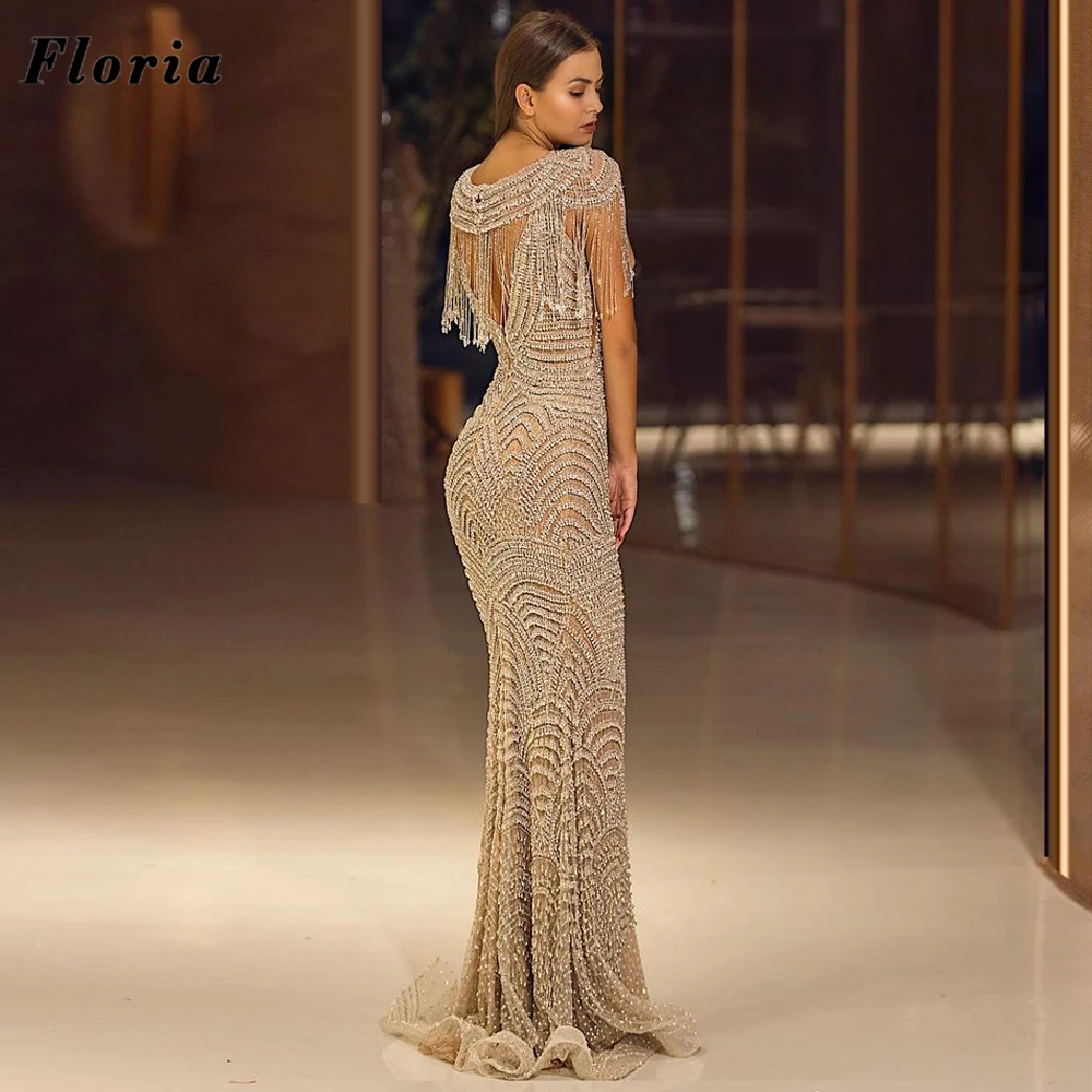 Женское вечернее платье с юбкой-годе Дубай от кутюр, официальное платье с бахромой и бисером, вечерние платья Саудовской Аравии на заказ, 2021
